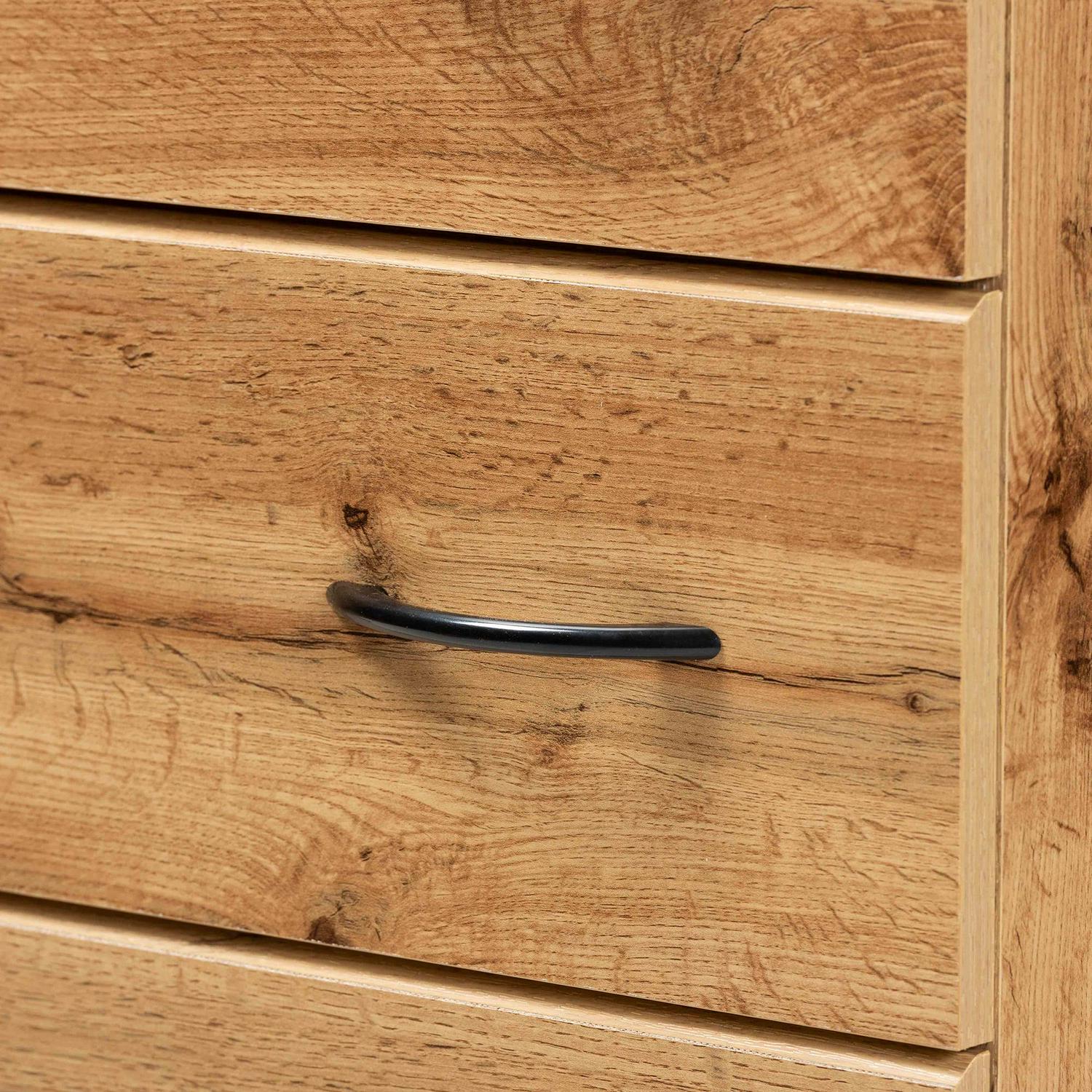 Offering convenient storage in a stunning design, the Maison storage chest is a modern approach to household organization. Made in Malaysia, this chest is constructed from sturdy wood showcasing a natural oak brown finish. Five spacious drawers provide abundant storage space to efficiently organize and declutter any space. Requiring assembly, the Maison features curved black drawer handles for a sleek touch of modern flair. With superb storage capability and contemporary refinement, the Maison storage chest is an outstanding solution to the needs of your home.