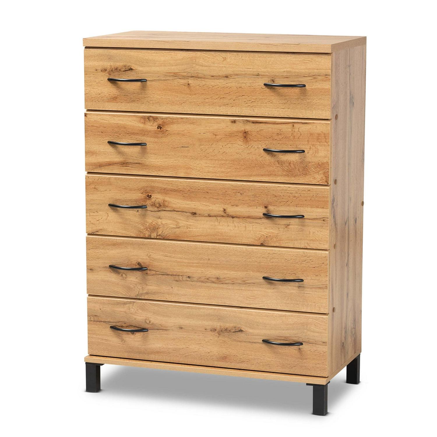 Baxton Studio Maison Modern and Contemporary Oak Brown Finished Wood 5-Drawer Storage Chest