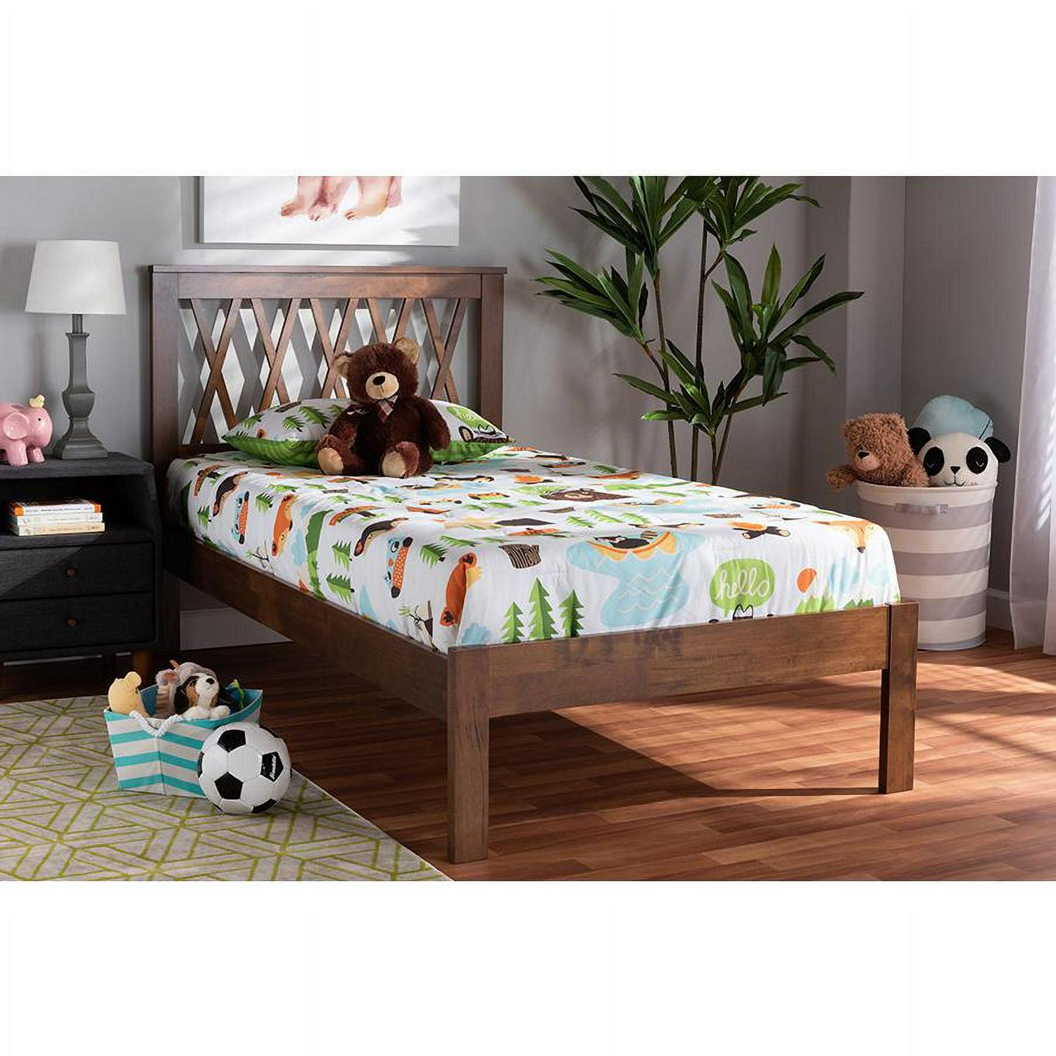 Baxton Studio Malene Mid-Century Modern Walnut Finished Wood Twin Size Platform Bed