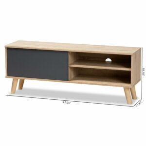 Baxton Studio Mallory Modern and Contemporary Two-Tone Oak Brown and Grey Finished Wood TV Stand