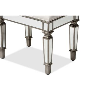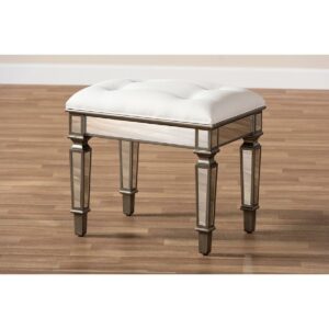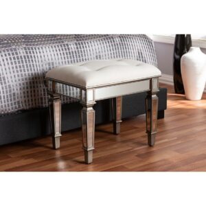 Baxton Studio Marielle Hollywood Regency Glamour Style Off White Fabric Upholstered Mirrored Ottoman Vanity Bench