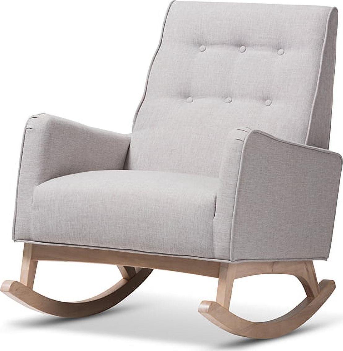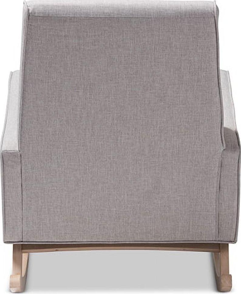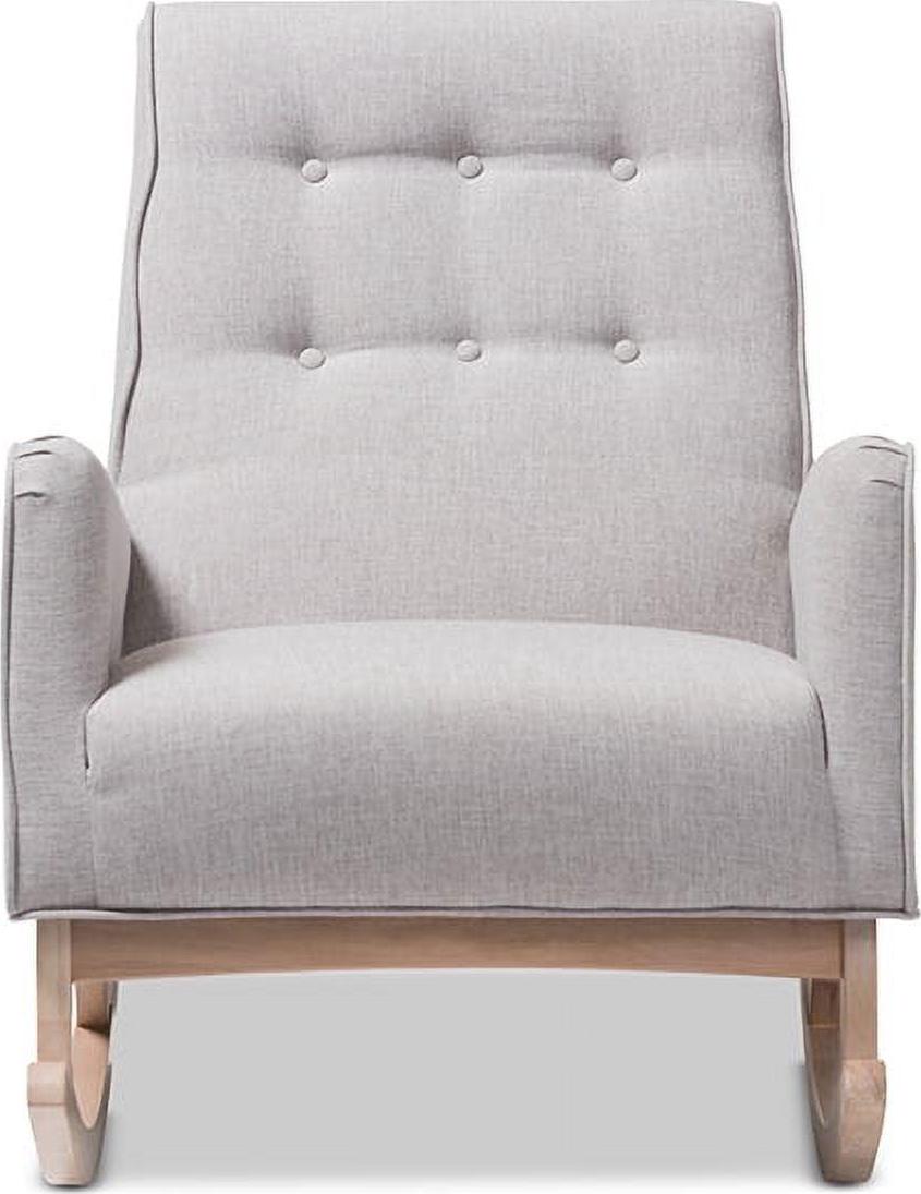 Baxton Studio Marlena Mid-Century Modern Greyish Beige Fabric Upholstered Whitewash Wood Rocking Chair