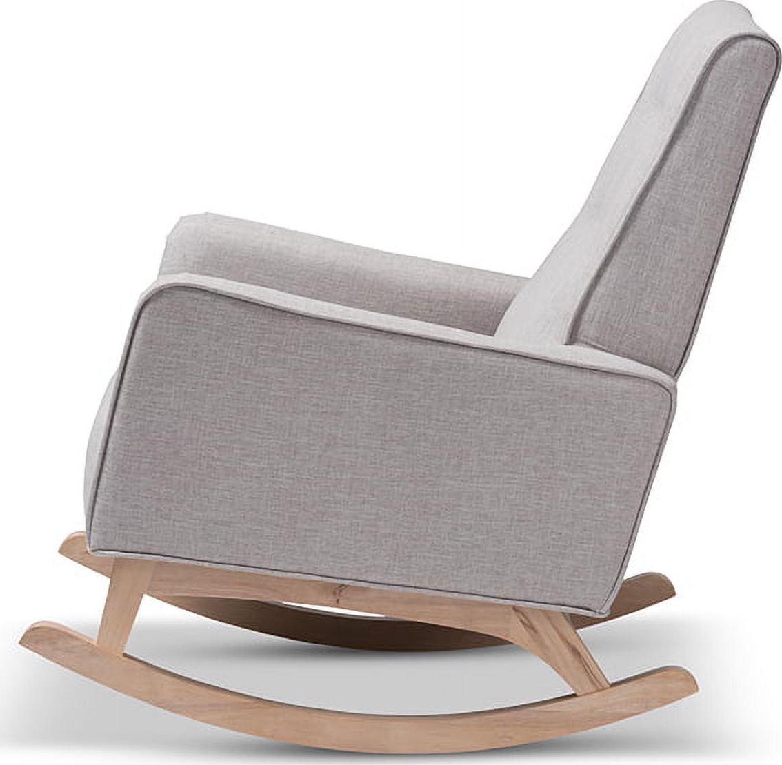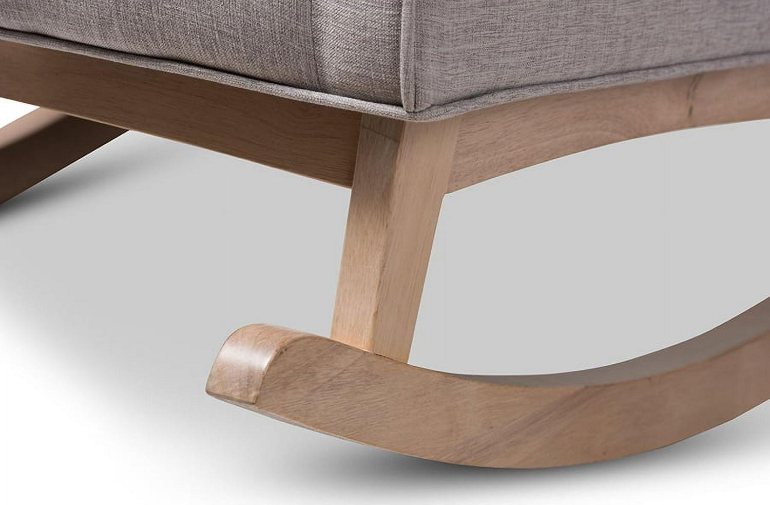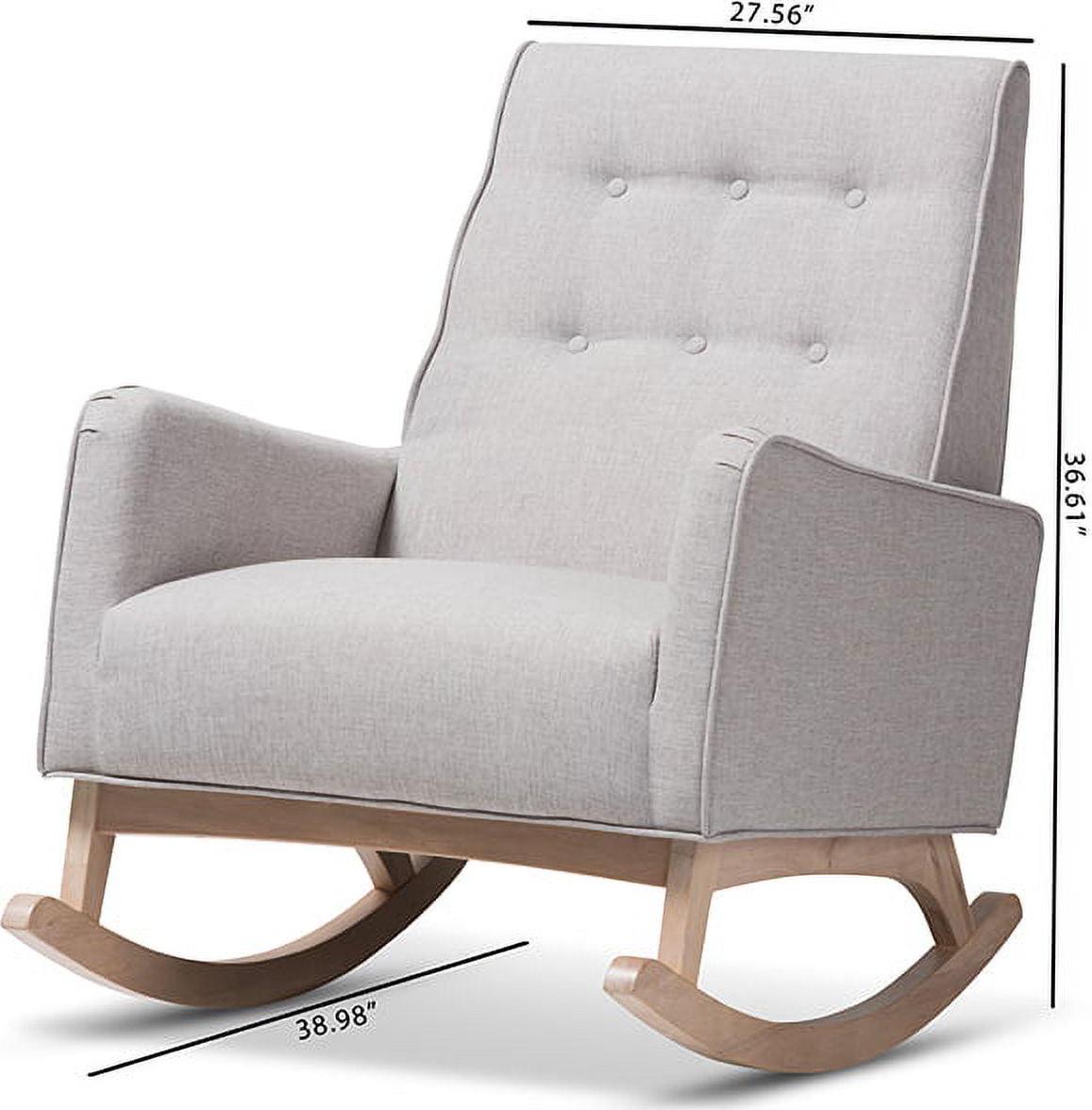 Baxton Studio Marlena Mid-Century Modern Greyish Beige Fabric Upholstered Whitewash Wood Rocking Chair