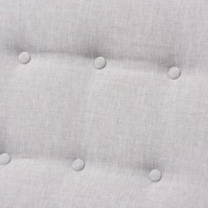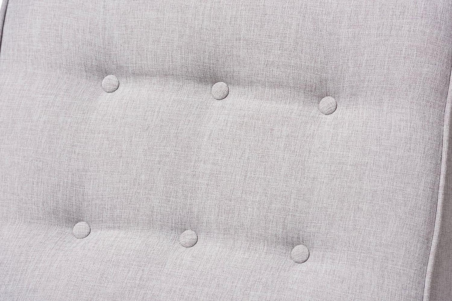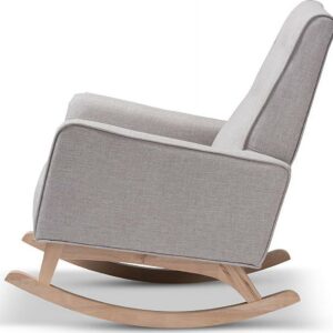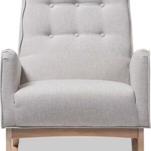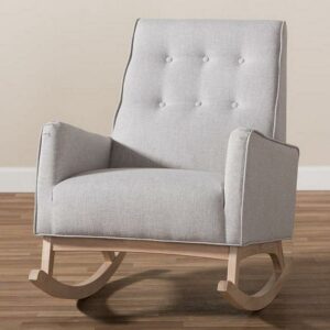 Baxton Studio Marlena Mid-Century Modern Greyish Beige Fabric Upholstered Whitewash Wood Rocking Chair Sophisticated style and smooth, calming lines come together in the Marlena rocking chair. This mid-century modern-inspired rocking chair features greyish beige fabric upholstery with button-tufting details and a subtle piping design. The low-profile Marlena rests on solid, whitewashed rubberwood legs. This rocking chair is foam padded, with the arms at an ergonomically designed height to make it easy to get cozy and stay relaxed. The Marlena is a stylish and comfortable addition to your nursery, livingroom, or any shared space. Made in Malaysia, this rocking chair requires assembly.