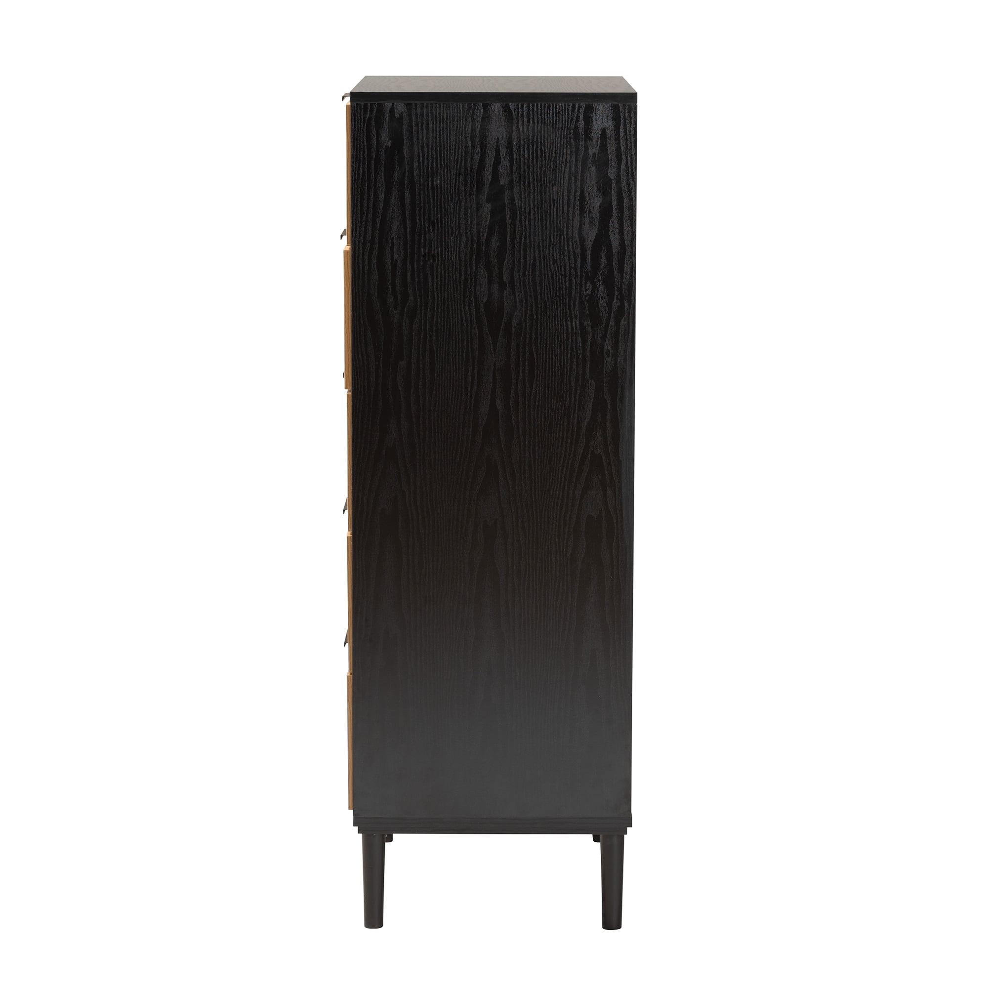 Baxton Studio Maureen Mid-Century Modern Espresso Brown Wood and Rattan 5-Drawer Storage Cabinet