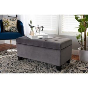 Baxton Studio Michaela Modern and Contemporary Grey Velvet Fabric Upholstered Storage Ottoman