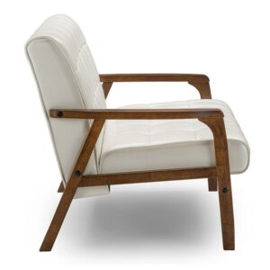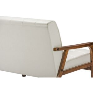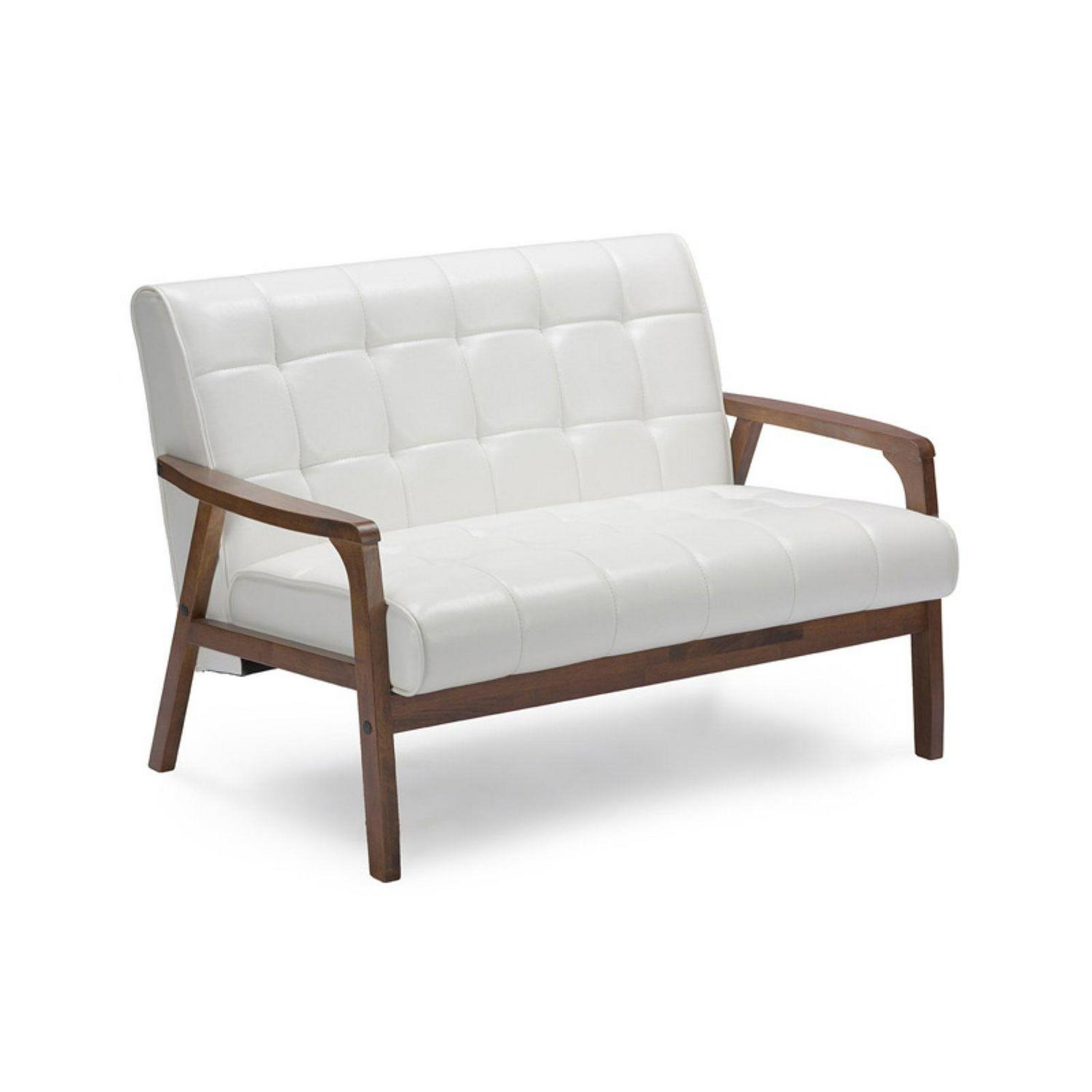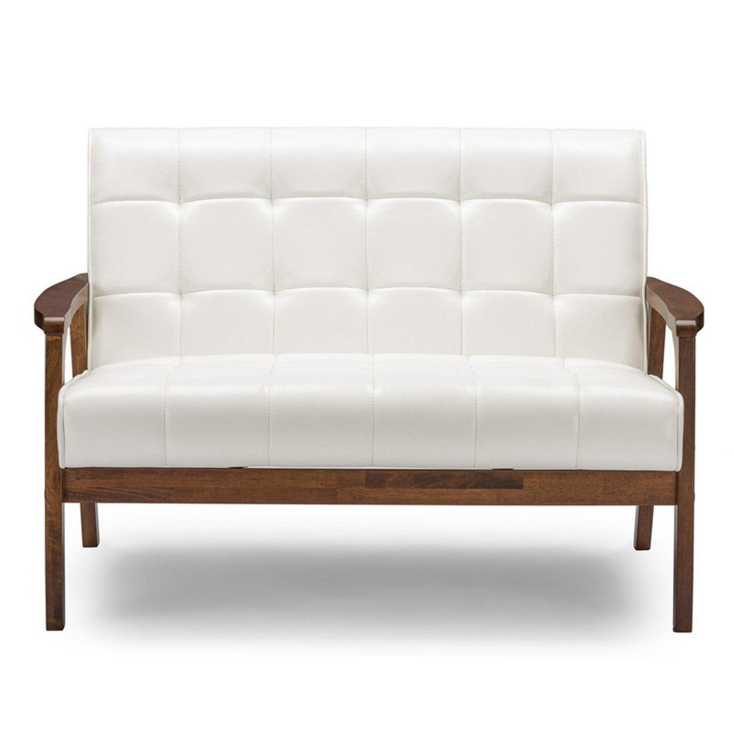 There s just something special about 20th-century style. We ve captured the essence of this period while moving it forward a few steps with our Mid-Century Masterpieces collection. You ll love this loveseat s retro flair without the collectibles-level price tag (dare we say cheap ). Medium brown wood veneer finish paired with a white faux leather foam-cushioned seat straddles the stylistic statements of yesterday and today for the perfect living-room accent. This loveseat is perfectly suitable for a small office setting or apartments.