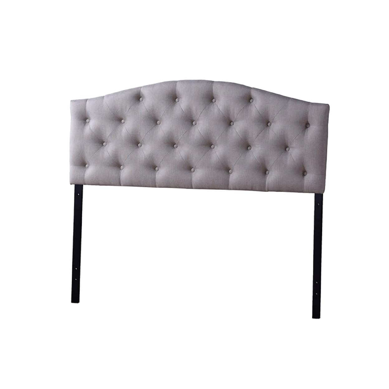 Baxton Studio Myra Modern and Contemporary Queen Size Light Beige Fabric Upholstered Button-tufted Scalloped Add an accent of interest to your bedroom style with the Myra Upholstered Headboard. The headboard is fully upholstered in light beige fabric for easy maintenance and every days use. Scalloped headboard frame with button-tufting design for a classic look while solid wood frame and leg supports for strength and sturdiness. Leg supports are invisible once set up and can be adjusted to suit the height of your ensemble for convenience. Headboard sits between the wall and the ensemble frame, attaching not to the bed base but to the legs, for stability. Cushioned layer for softness and comfort. Made in Malaysia, the headboard requires assembly.