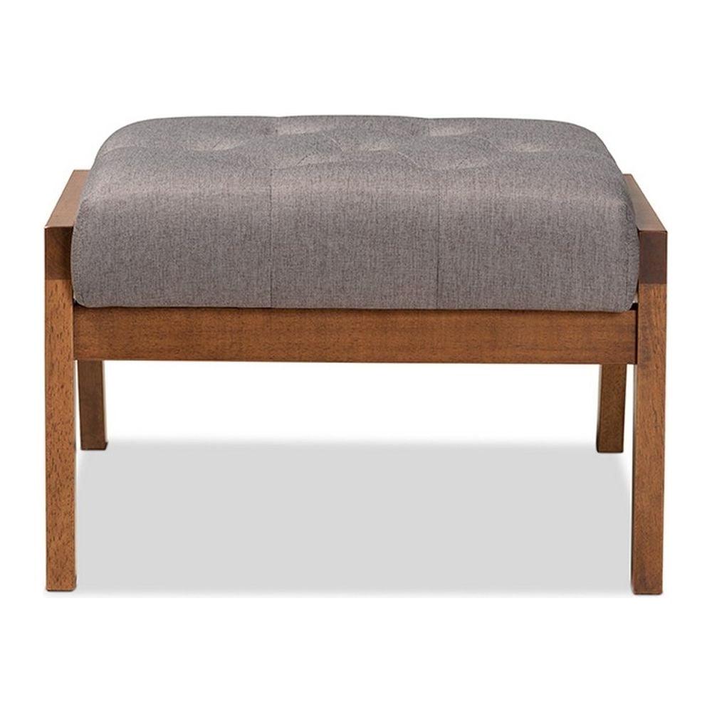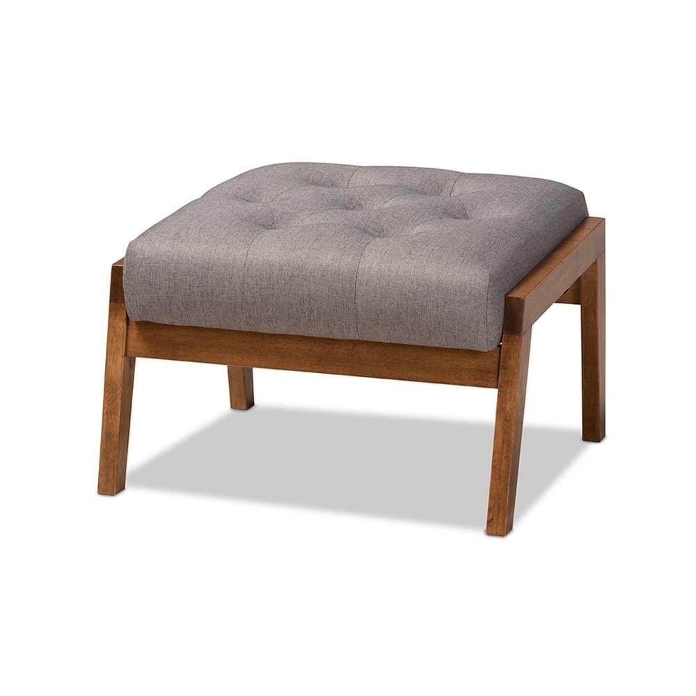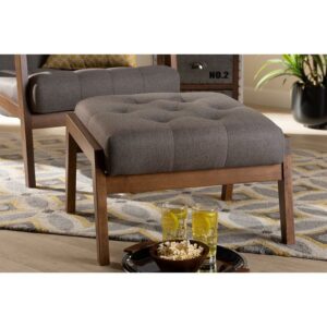 Baxton Studio Naeva Mid-Century Modern Grey Fabric Upholstered Walnut Finished Wood Footstool