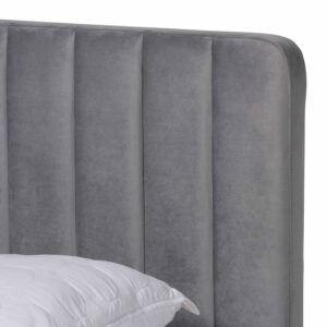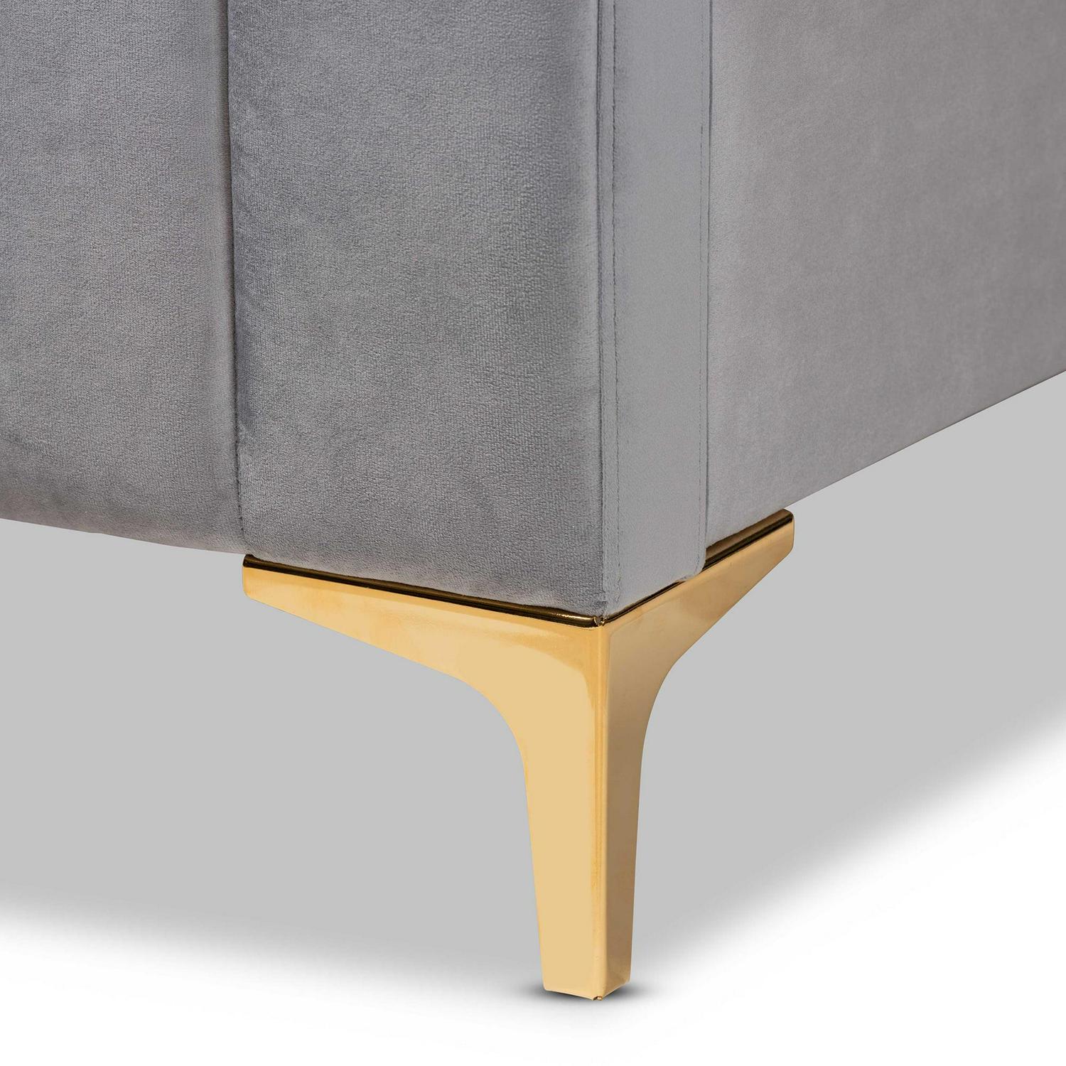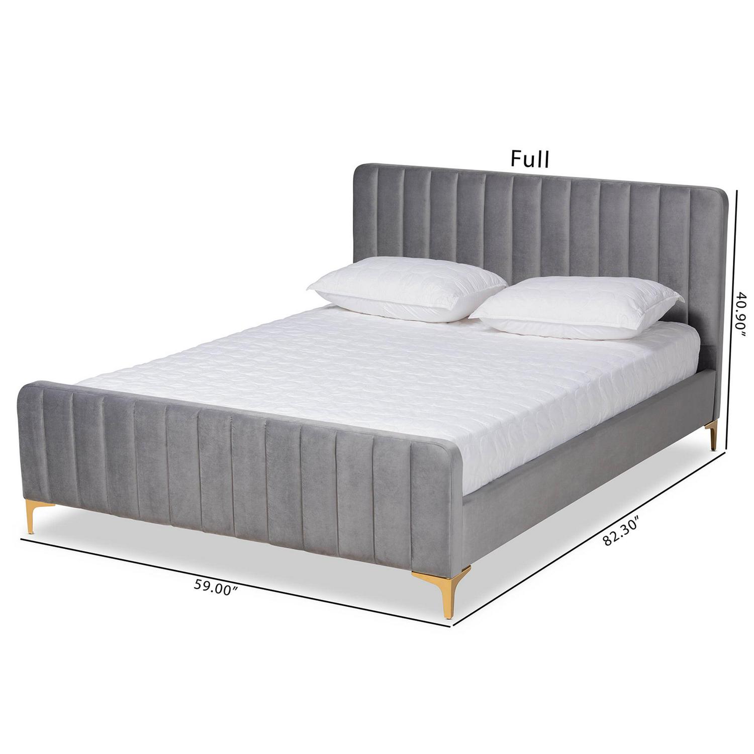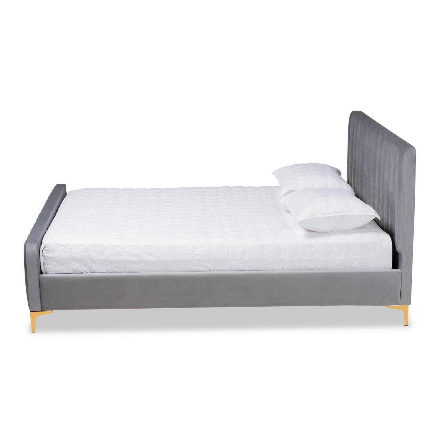 Baxton Studio Nami Modern Contemporary Glam and Luxe Light Grey Velvet Fabric Upholstered and Gold Finished Full Size Platform Bed