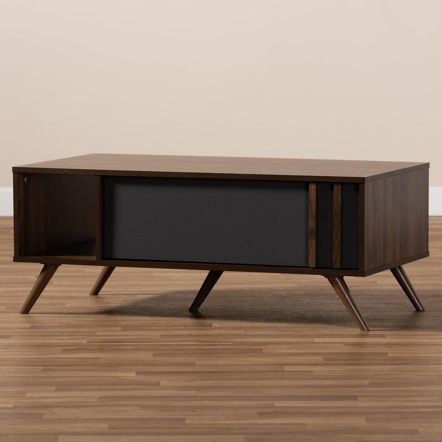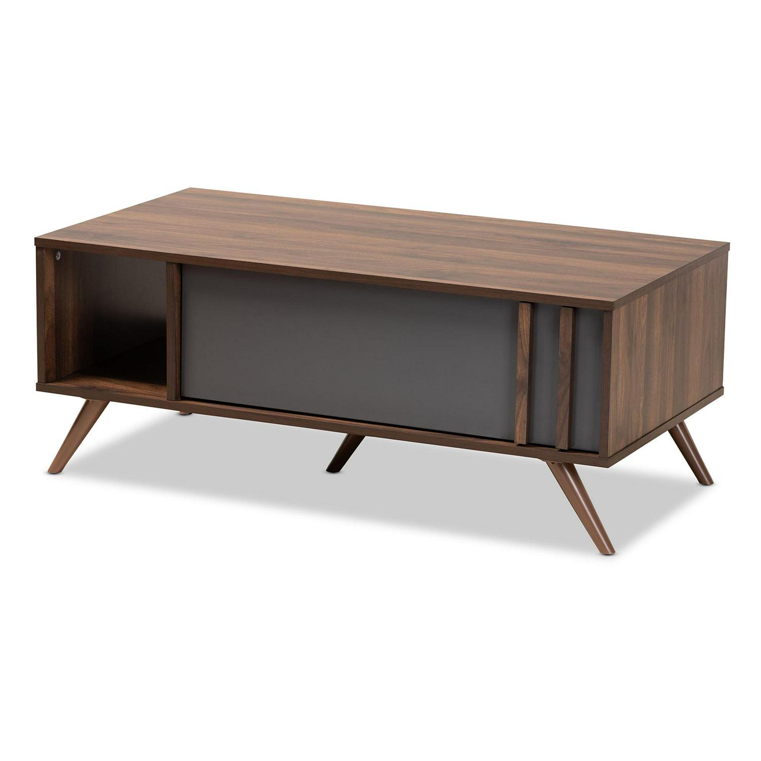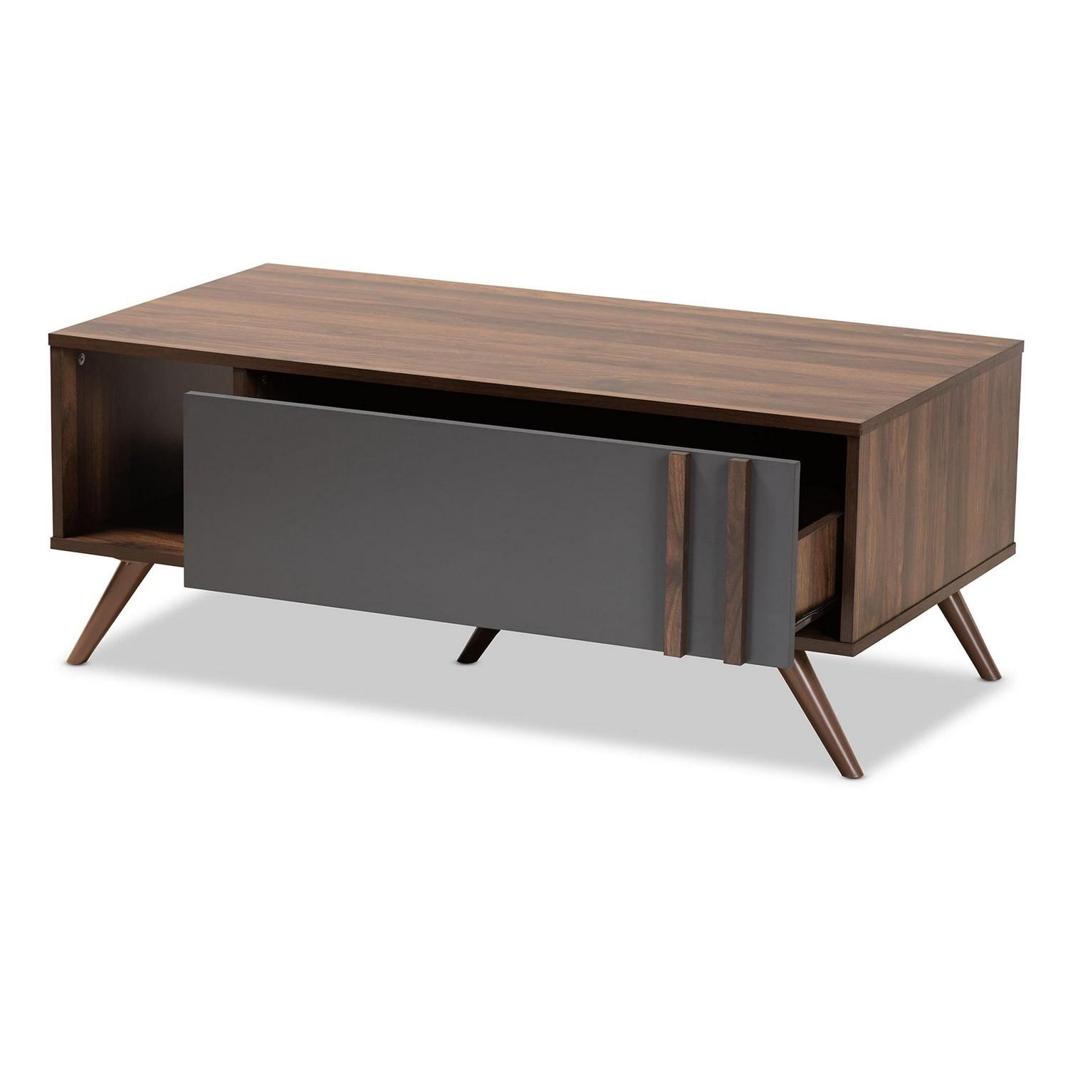 Baxton Studio Naoki Modern and Contemporary Two-Tone Grey and Walnut Finished Wood 1-Drawer Coffee Table