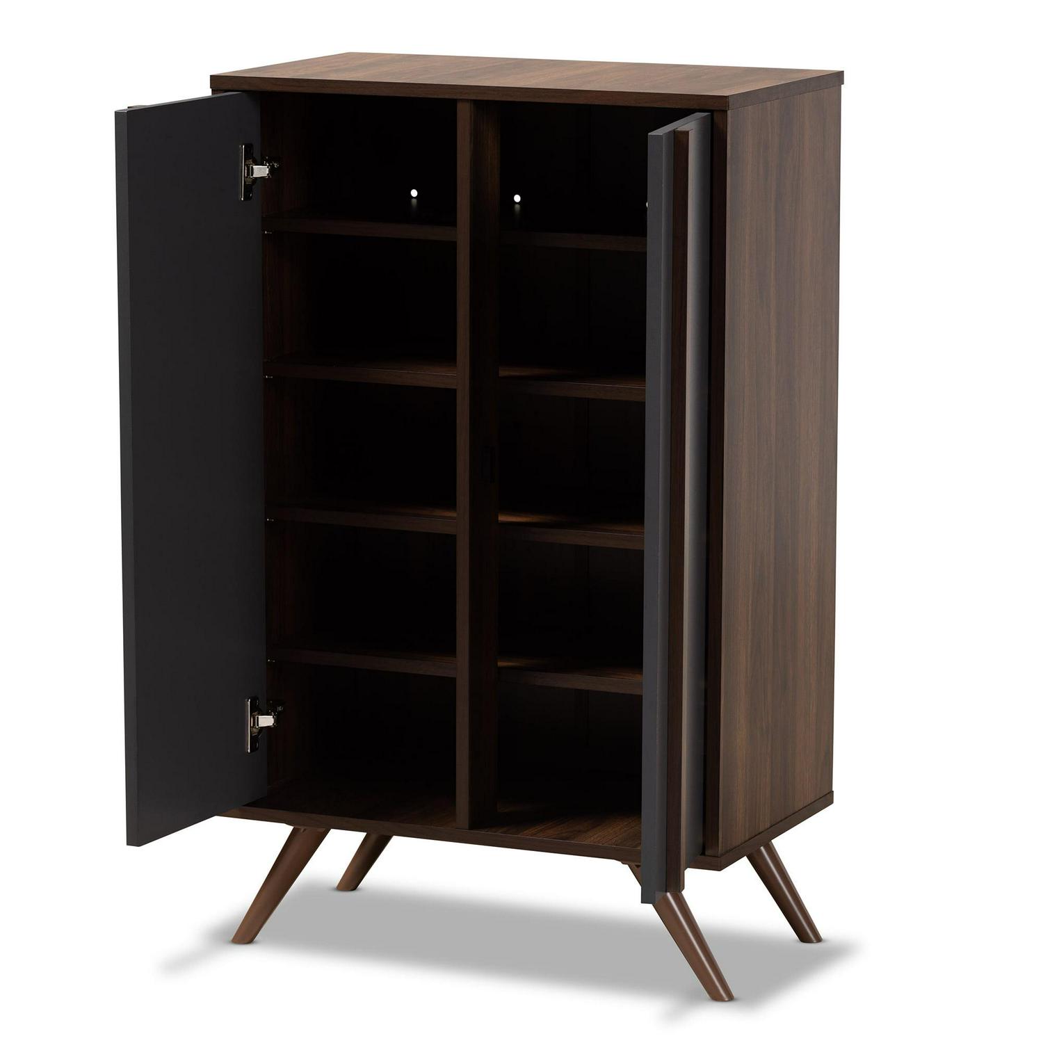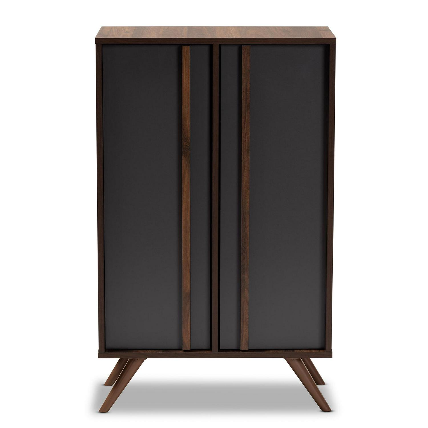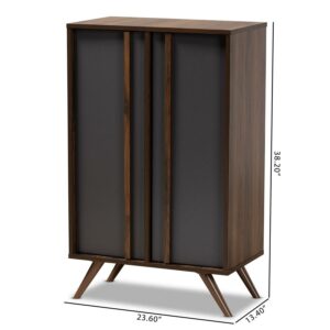 Baxton Studio Naoki Modern and Contemporary Two-Tone Grey and Walnut Finished Wood 2-Door Shoe Cabinet