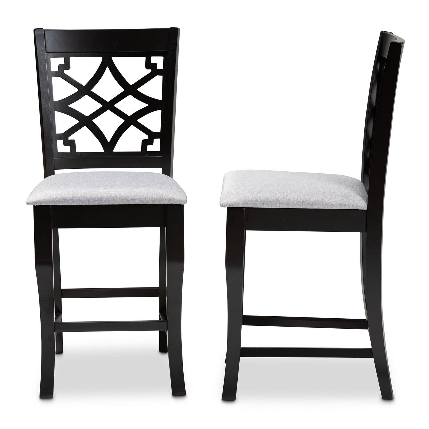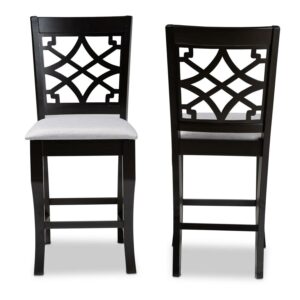Baxton Studio Nisa Modern and Contemporary Gray Fabric Upholstered Espresso Brown Finished 2-Piece Wood Counter Stool Set Set