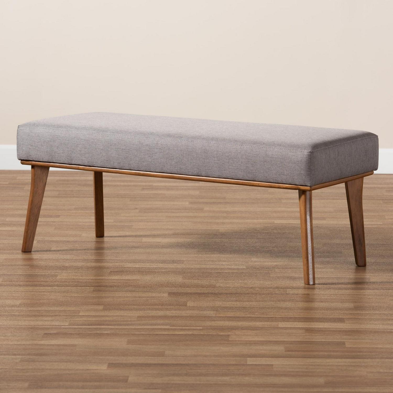 Baxton Studio Odessa Mid-Century Modern Grey Fabric Upholstered and Walnut Brown Finished Wood Dining Bench