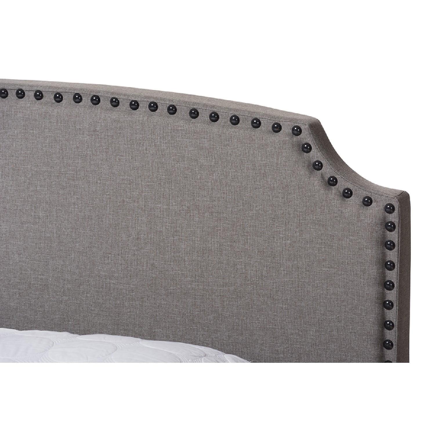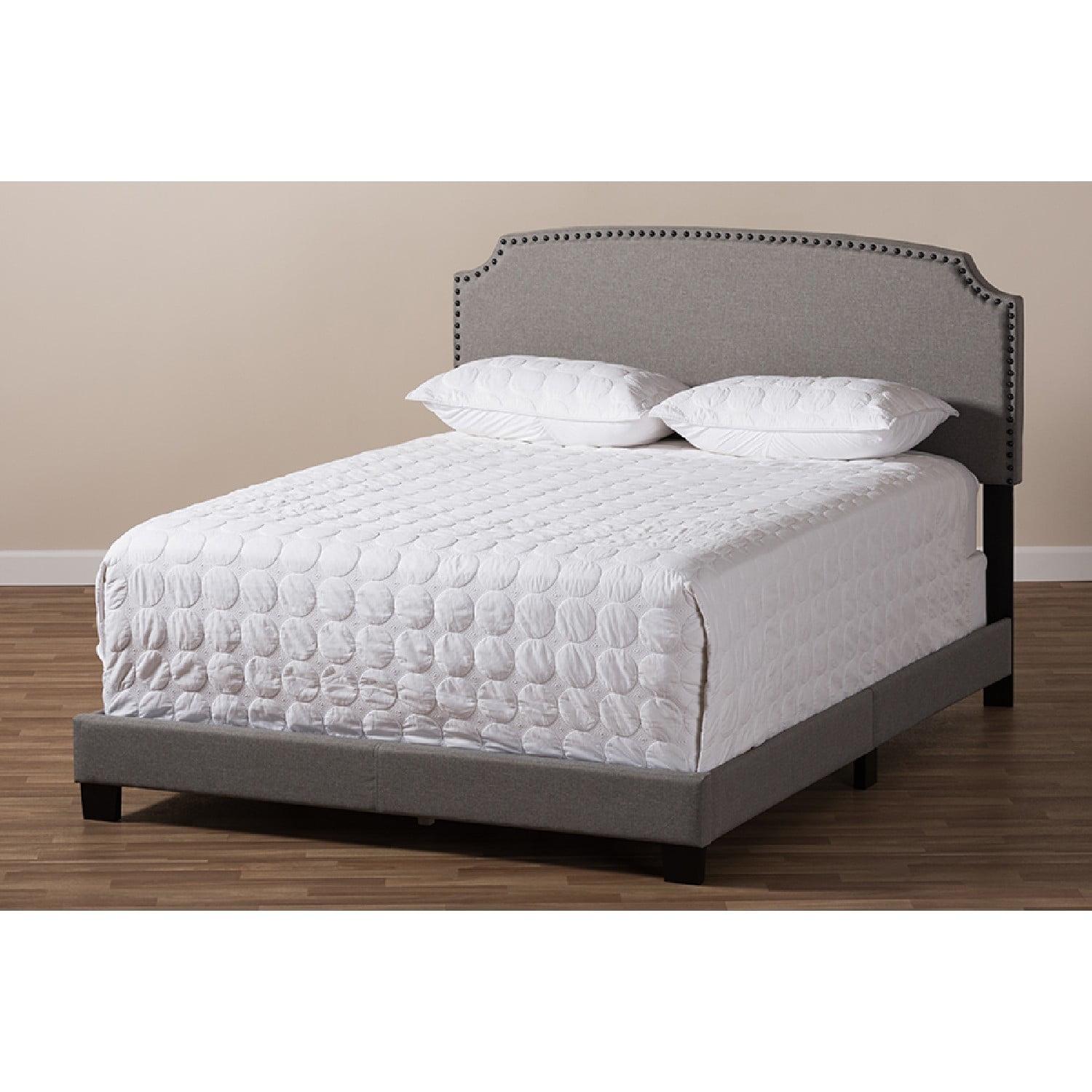 Baxton Studio Odette Modern and Contemporary Light Grey Fabric Upholstered King Size Bed The Odette king size bed has a style that is both contemporary and timeless. The modern and contemporary-inspired design is versatile and easy to coordinate with your dcor. The Odette features light grey fabric upholstery and a low profile footboard styling. The curvaceous headboard is padded and has a stylish nailhead trim. Refresh your guest room with the Odette, or keep the style for yourself in your own bedroom. This bed is made for use with a box spring and mattress. Made in Malaysia, the Odette requires assembly.