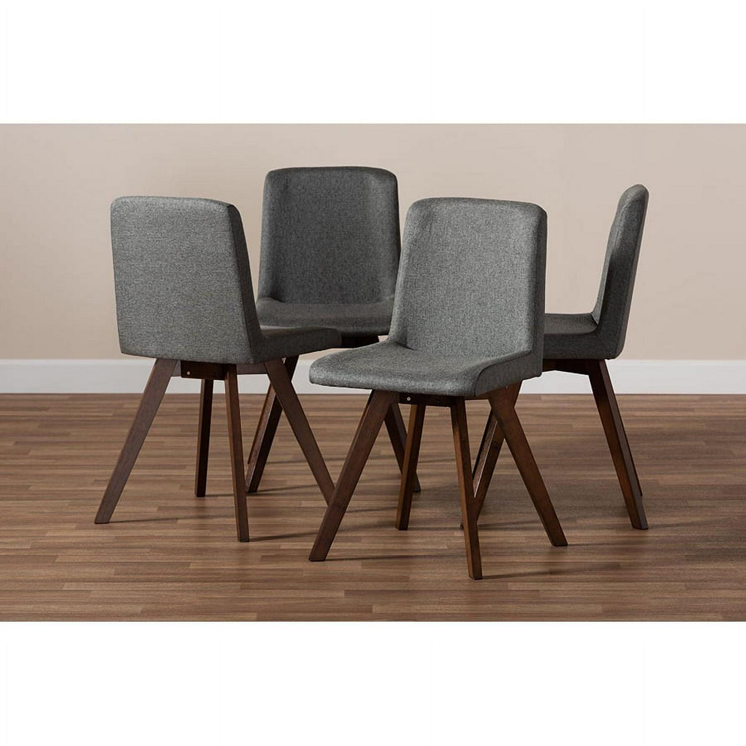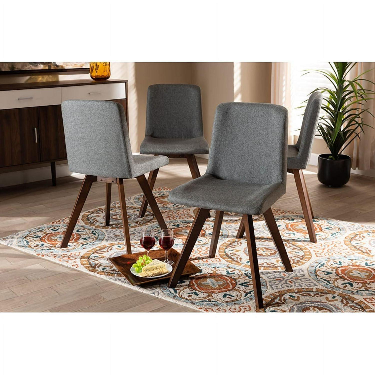 Baxton Studio Pernille Modern Transitional Grey Fabric Upholstered Walnut Finished 4-Piece Wood Dining Chair Set Set
