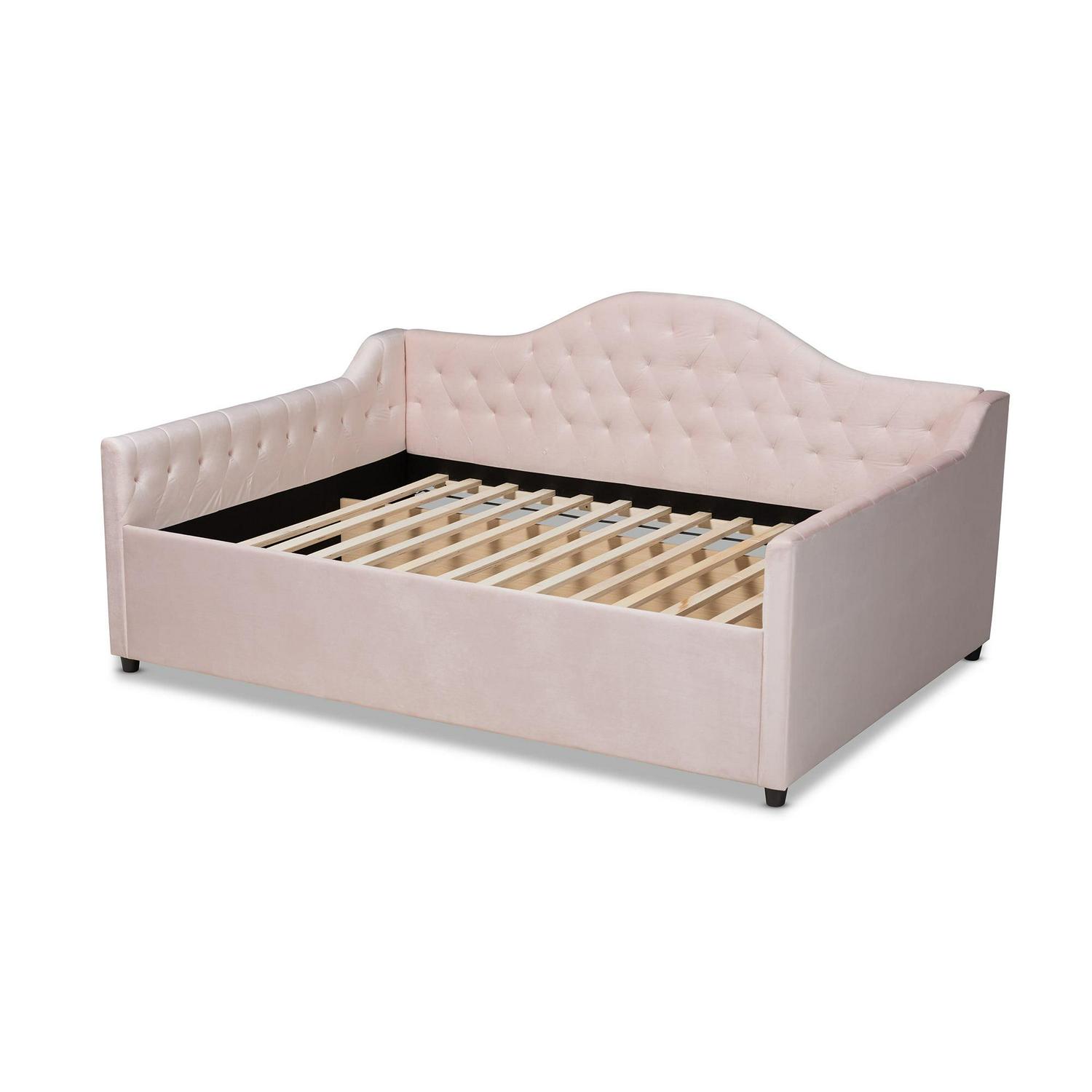 Baxton Studio Perry Light Pink Velvet Button Tufted Full Size Daybed