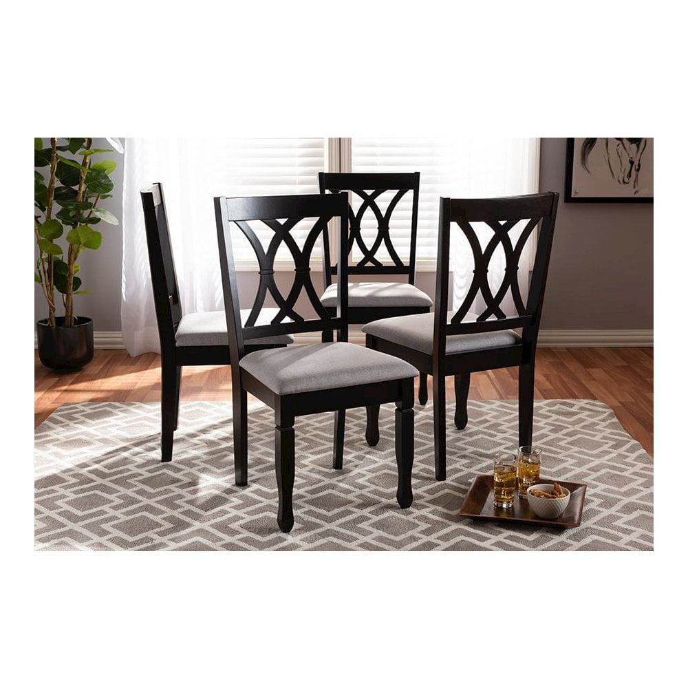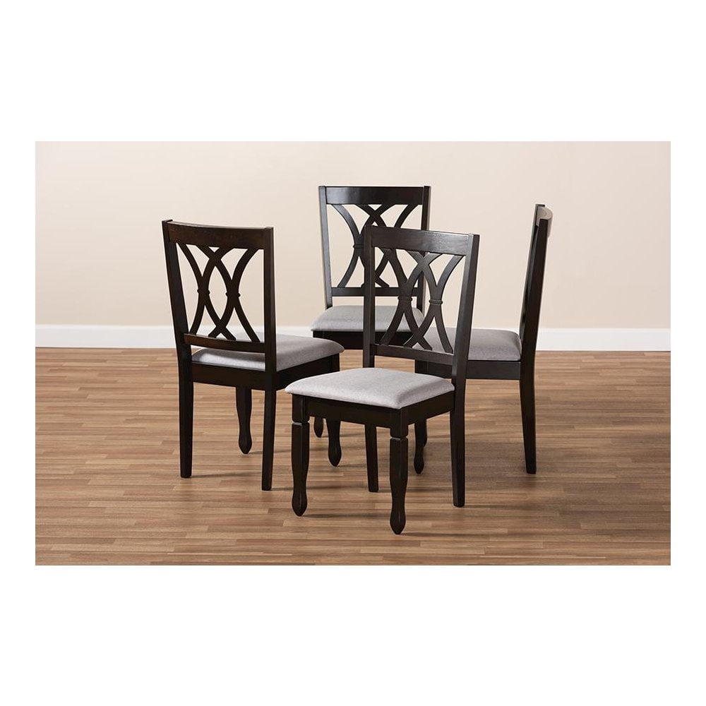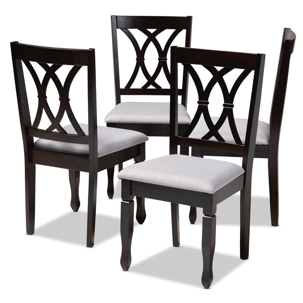 Baxton Studio Reneau Fabric and Wood Dining Chairs in Gray and Brown (Set of 4)