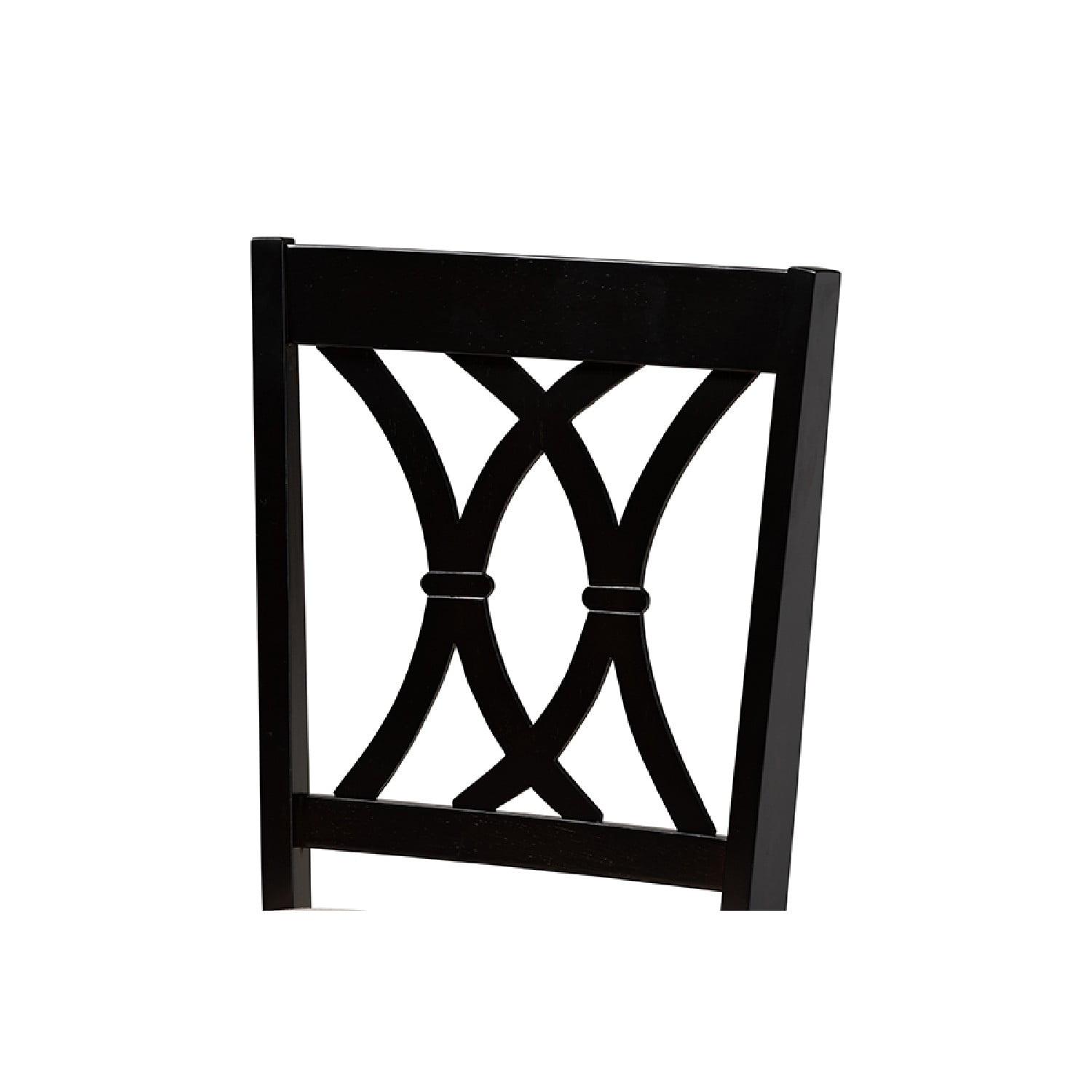 Baxton Studio Reneau Modern and Contemporary Sand Fabric Upholstered Espresso Brown Finished Wood 2-Piece Dining Chair Featuring an exquisitely crafted frame, the Reneau dining chair adds elegance to any dining space. This solid rubberwood chair displays a sleek espresso brown finish that complements the light polyester fabric upholstery. Designed to add both comfort and style to your dining space, the chair features a plush foam-padded seat, as well as a stunning cut-out design on its back. Tapered feet add a classic, refined touch. Built for long dinners with family and friends, the Reneau is sure to enhance any dining experience. The Reneau dining chair is made in Malaysia and requires assembly.