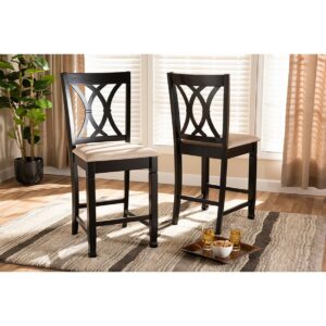 Baxton Studio Reneau Modern and Contemporary Sand Fabric Upholstered Espresso Brown Finished Wood Counter Height Pub