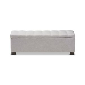 Baxton Studio Roanoke Modern and Contemporary Grayish Beige Fabric Upholstered Grid-Tufting Storage Ottoman Bench