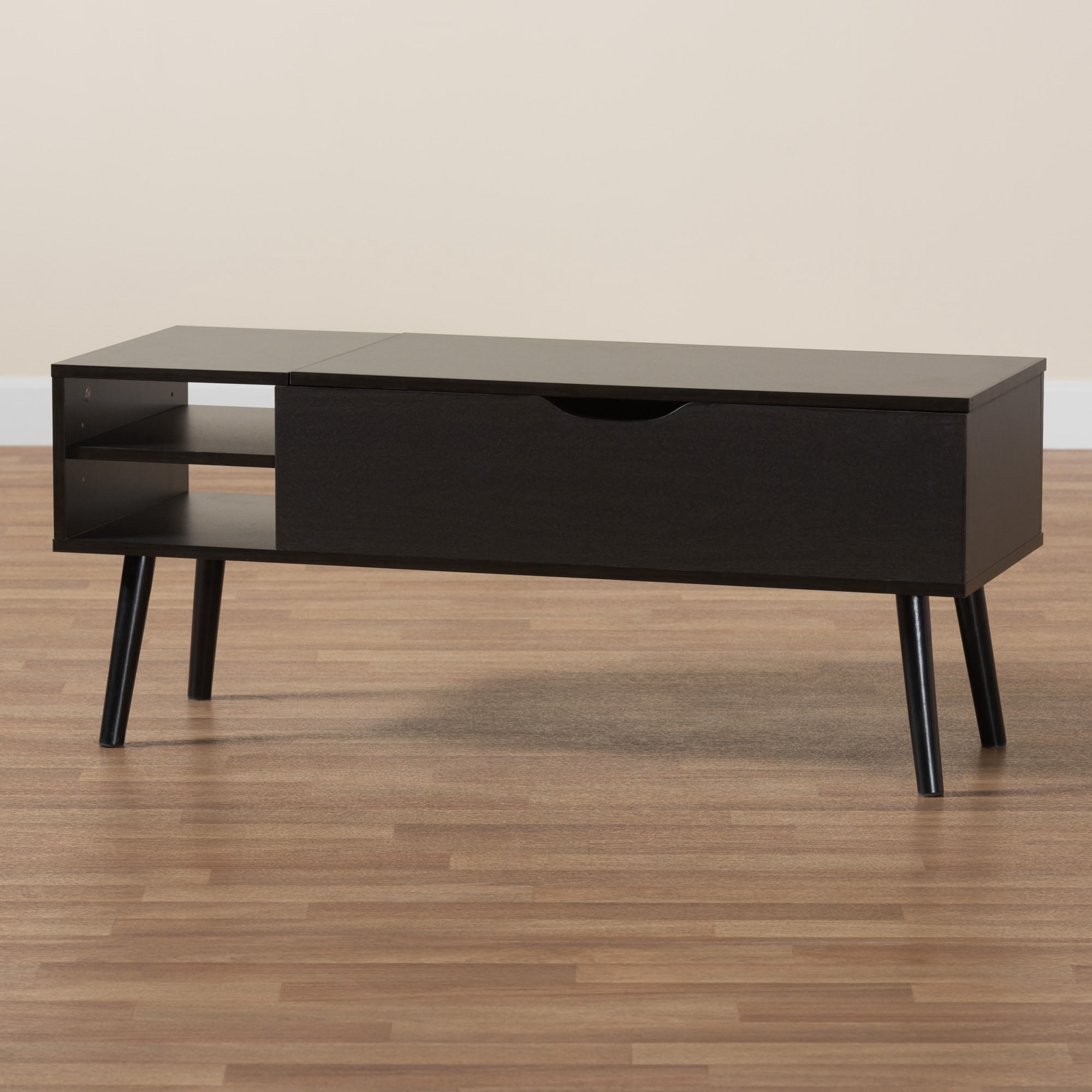 Baxton Studio Lift-Top Solid Wood Coffee Table, Dark Brown/Black