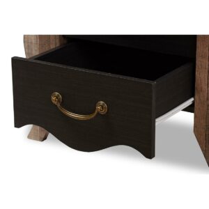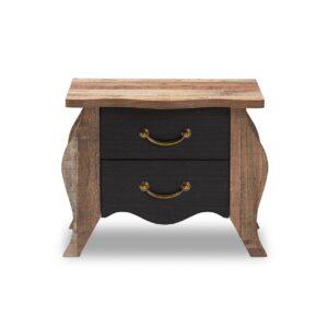 Baxton Studio Romilly Country Cottage Farmhouse Black and Oak-Finished Wood 2-Drawer Nightstand