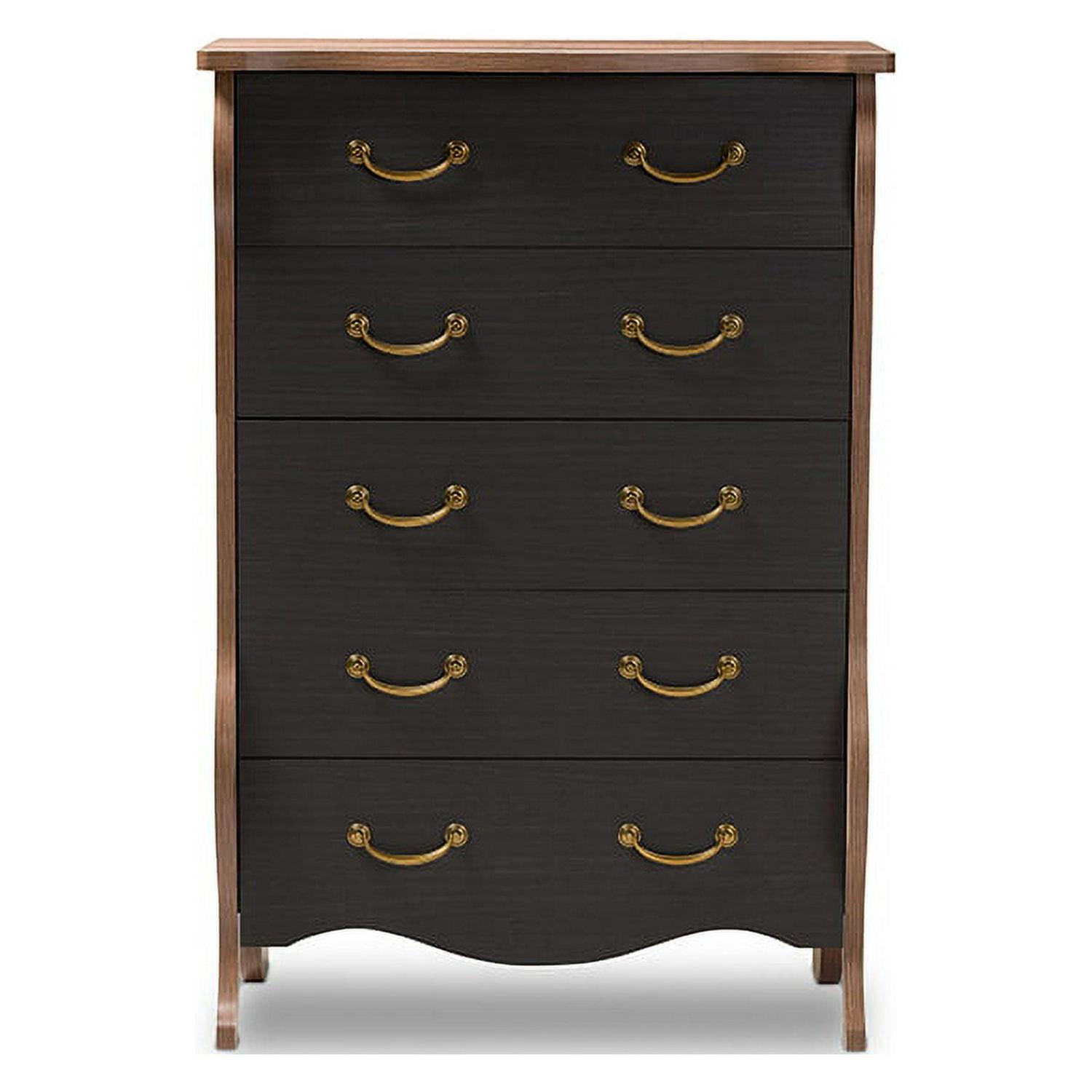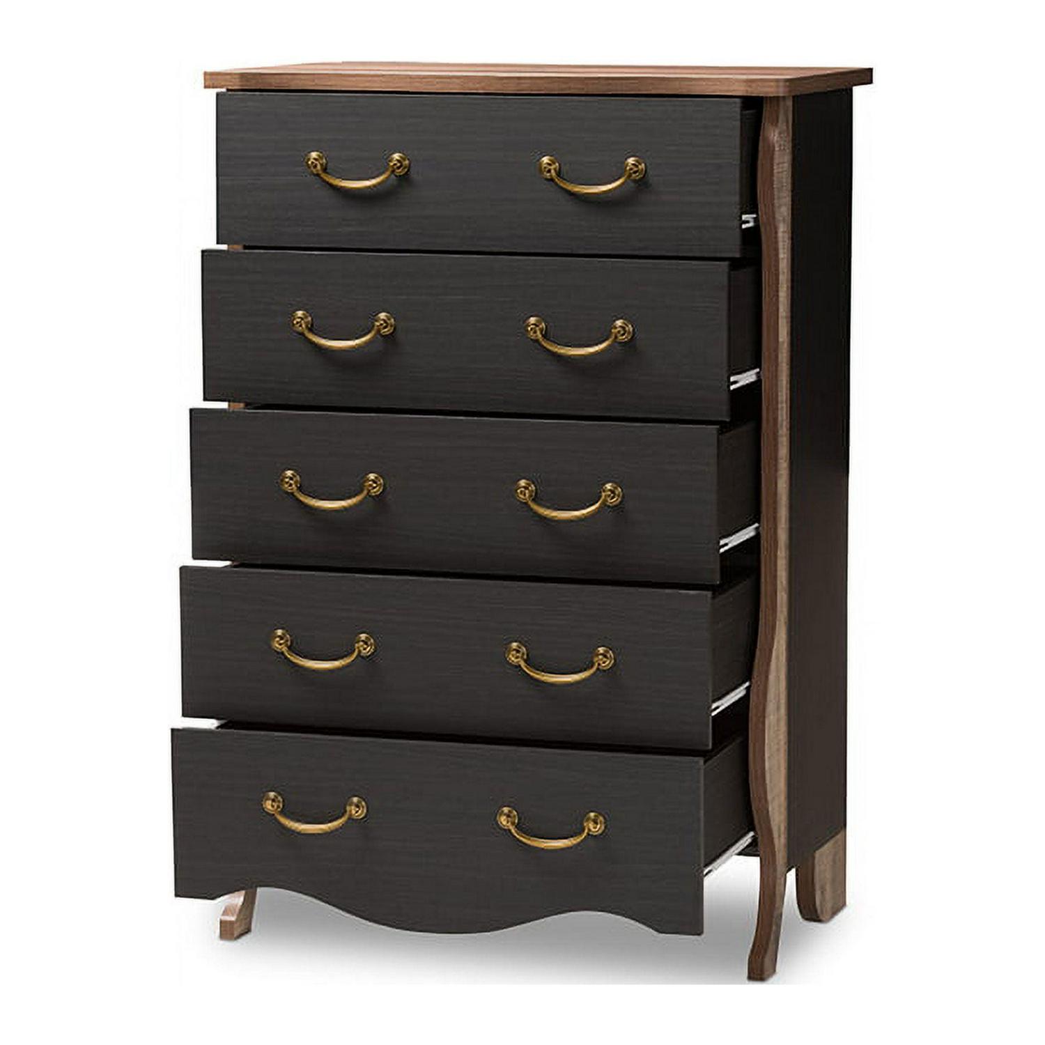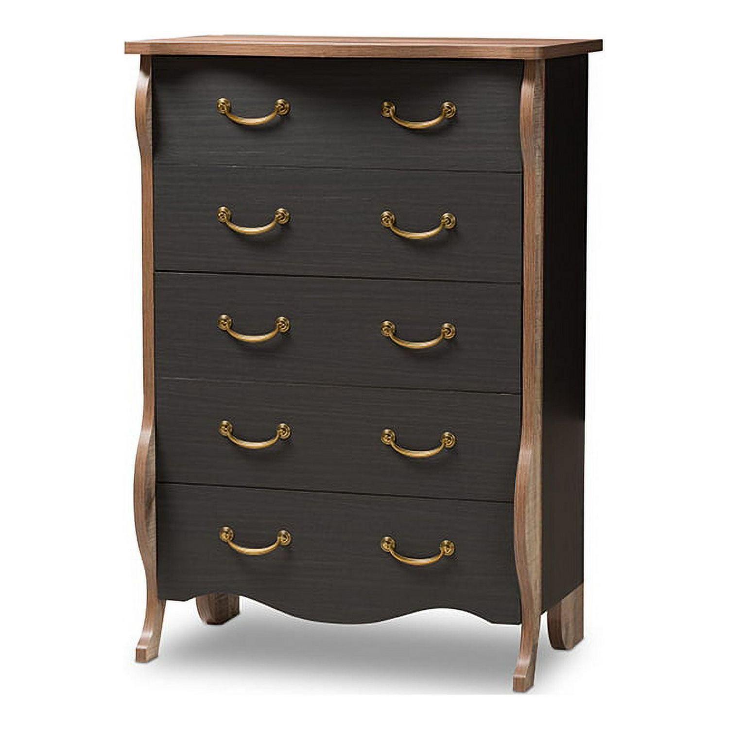 Baxton Studio Romilly Country Cottage Farmhouse Black and Oak-Finished Wood 5-Drawer Chest