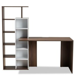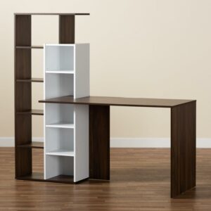 Baxton Studio Rowan Contemporary 23.6 in MDF Portable Computer Desk with Storage, Walnut Brown/White
