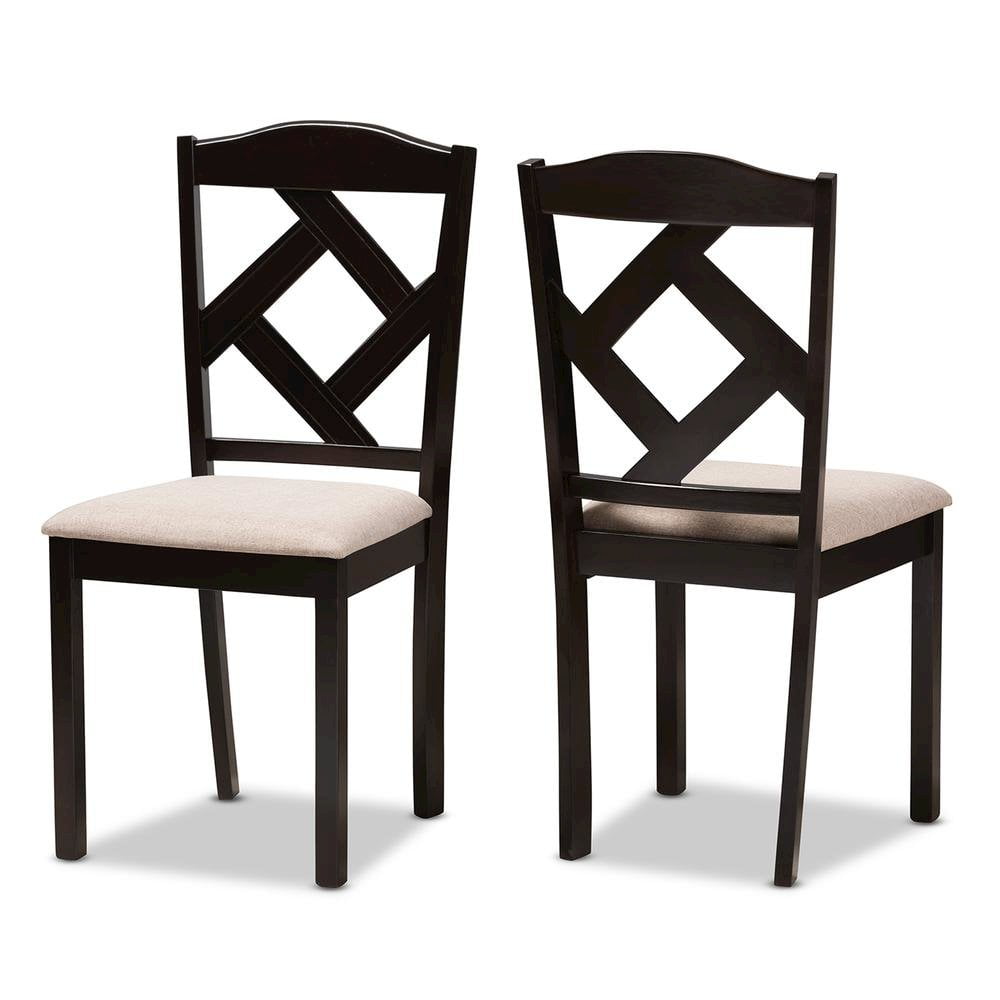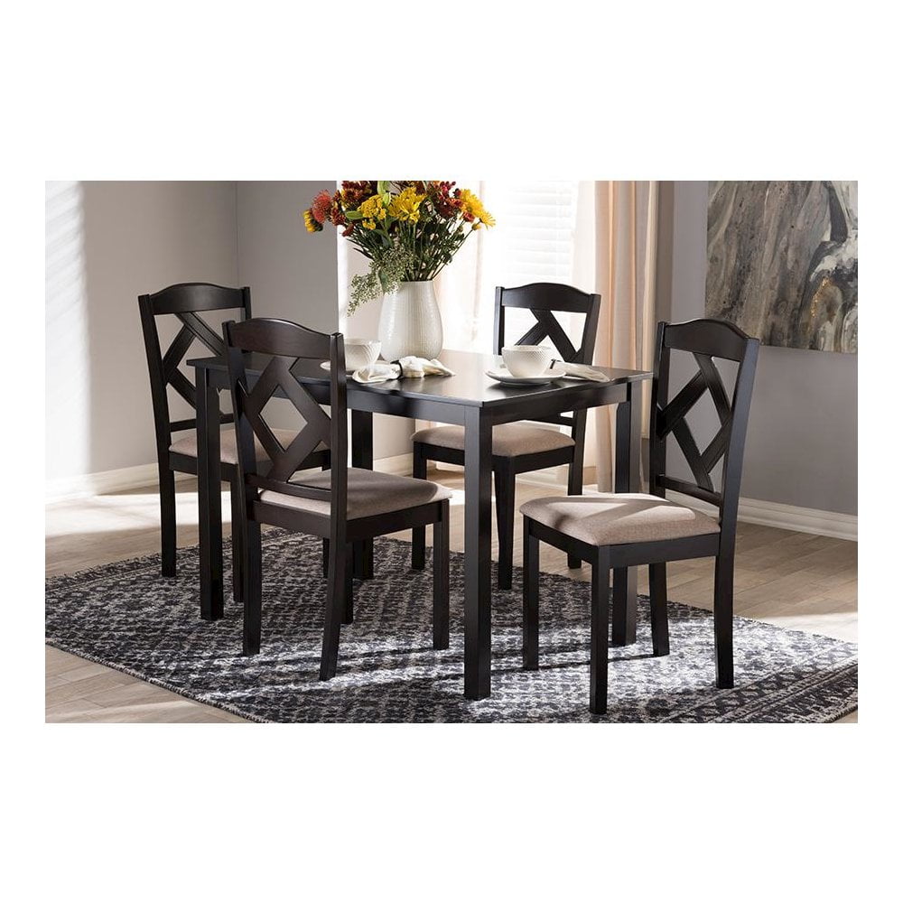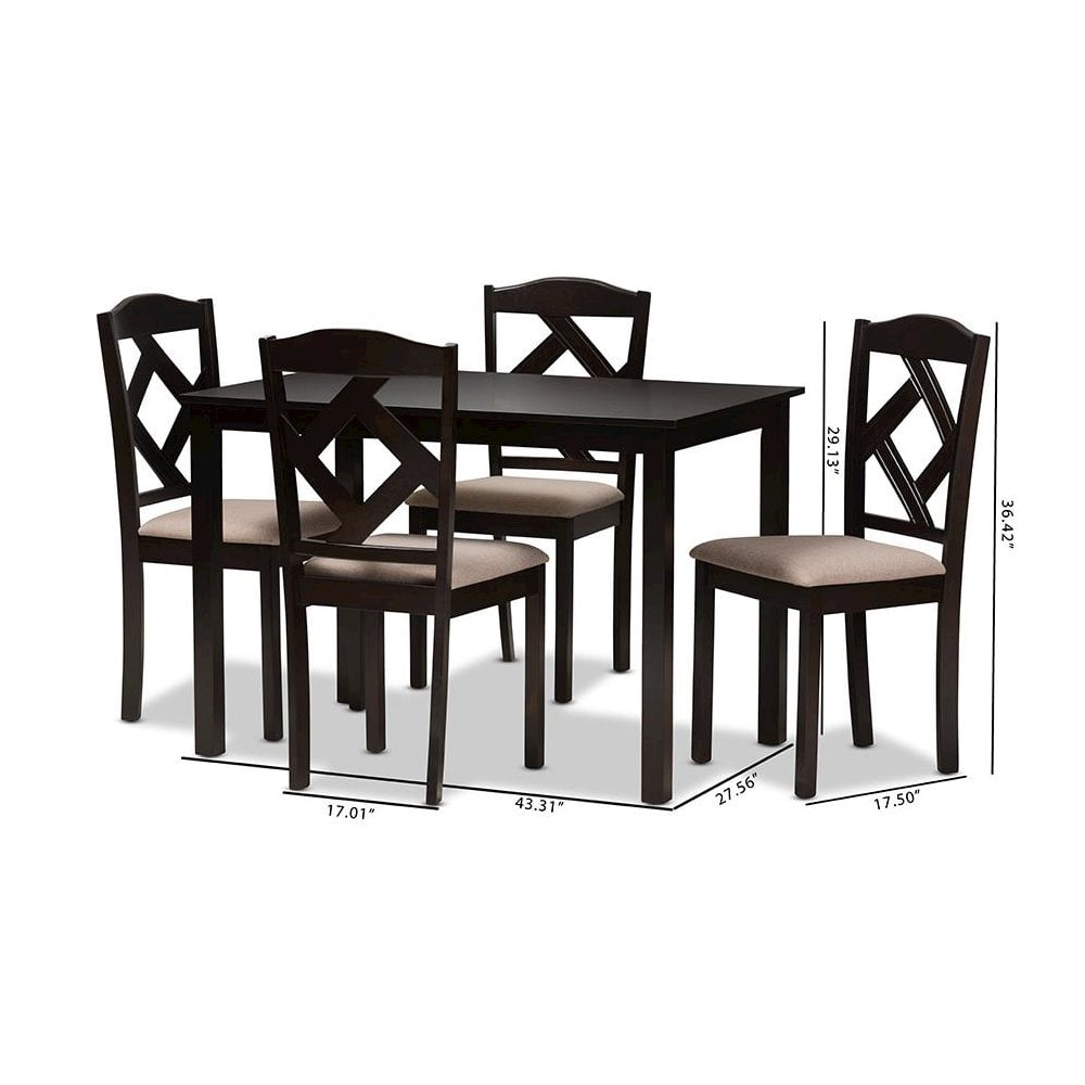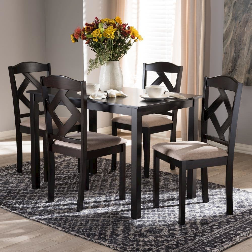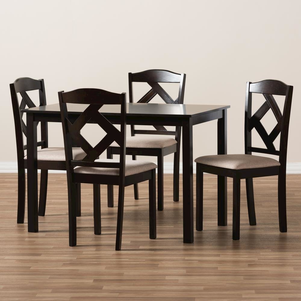 Baxton Studio Ruth Modern and Contemporary Beige Fabric Upholstered and Dark Brown Finished 5-Piece Dining Set