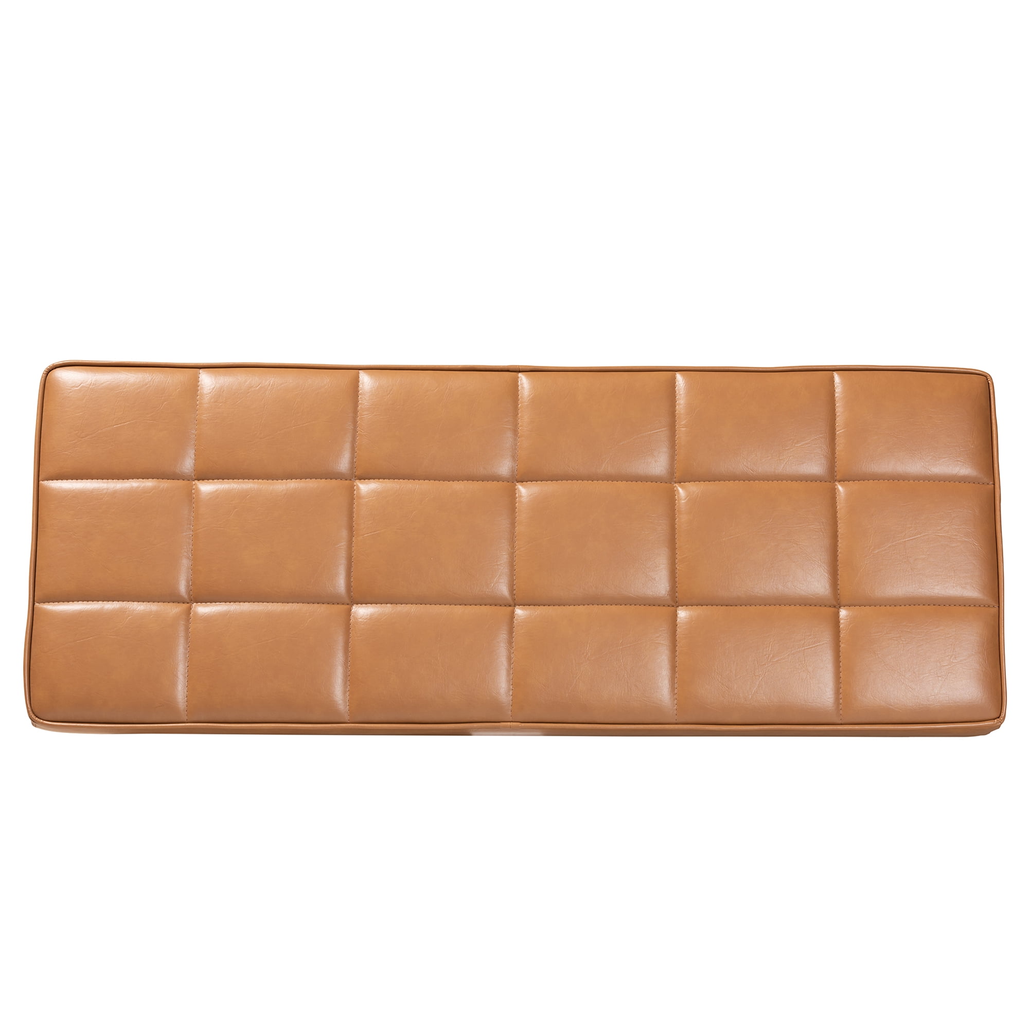 Mid-century modern dining bench Constructed from rubber wood and engineered wood Upholstered in faux leather and padded with foam Assembly required Product Weight: 23.4 Pound Package Weight: 1 Pound Dimensions: 17.3″ High x 47″ Wide x 17.7″ Deep Seating Dimensions: 17.3″ High x 47″ Wide x 17.7″ Deep Legs: 11.4″ High Product Color: Tan/Walnut Brown Product Composition: Faux Leather/MDF/LVL/Foam/rubber wood