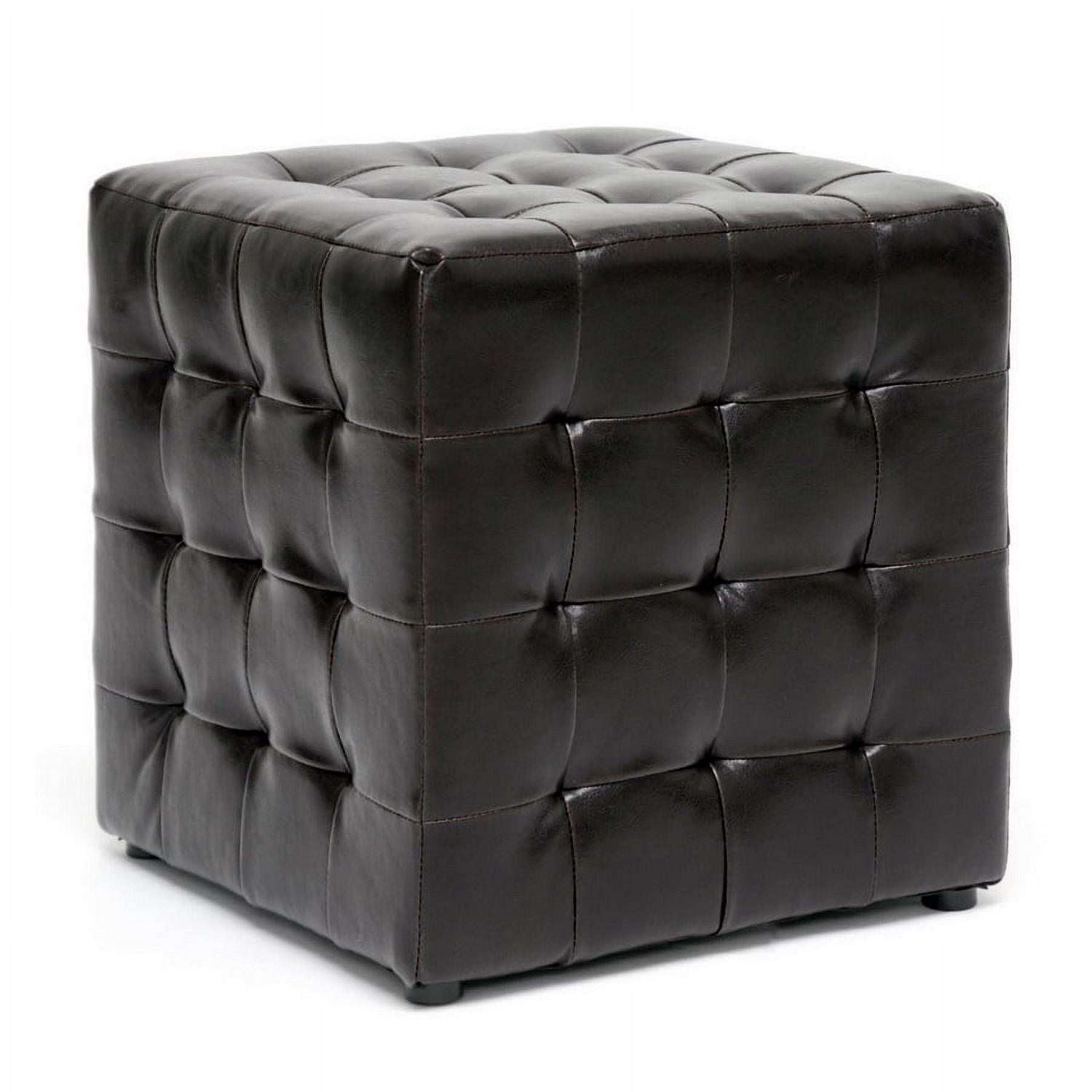 Who would have though such a small ottoman could pack such a punch The detailed construction of our Siskal Ottoman is rounded out with dark brown faux leather panels stitched together and pulled inward at their intersections, creating the allover tufted look. The ottoman features a wooden frame, foam padding, black fabric-lined bottom, and black plastic feet. This style is also offered in black, red, and white (each sold separately). This ottoman is small, hollow, and relatively lightweight but sturdy. Made in Malaysia; fully assembled. To clean, wipe with a dry cloth. Product dimension: 14.25″Wx14.25″Dx14.75″H