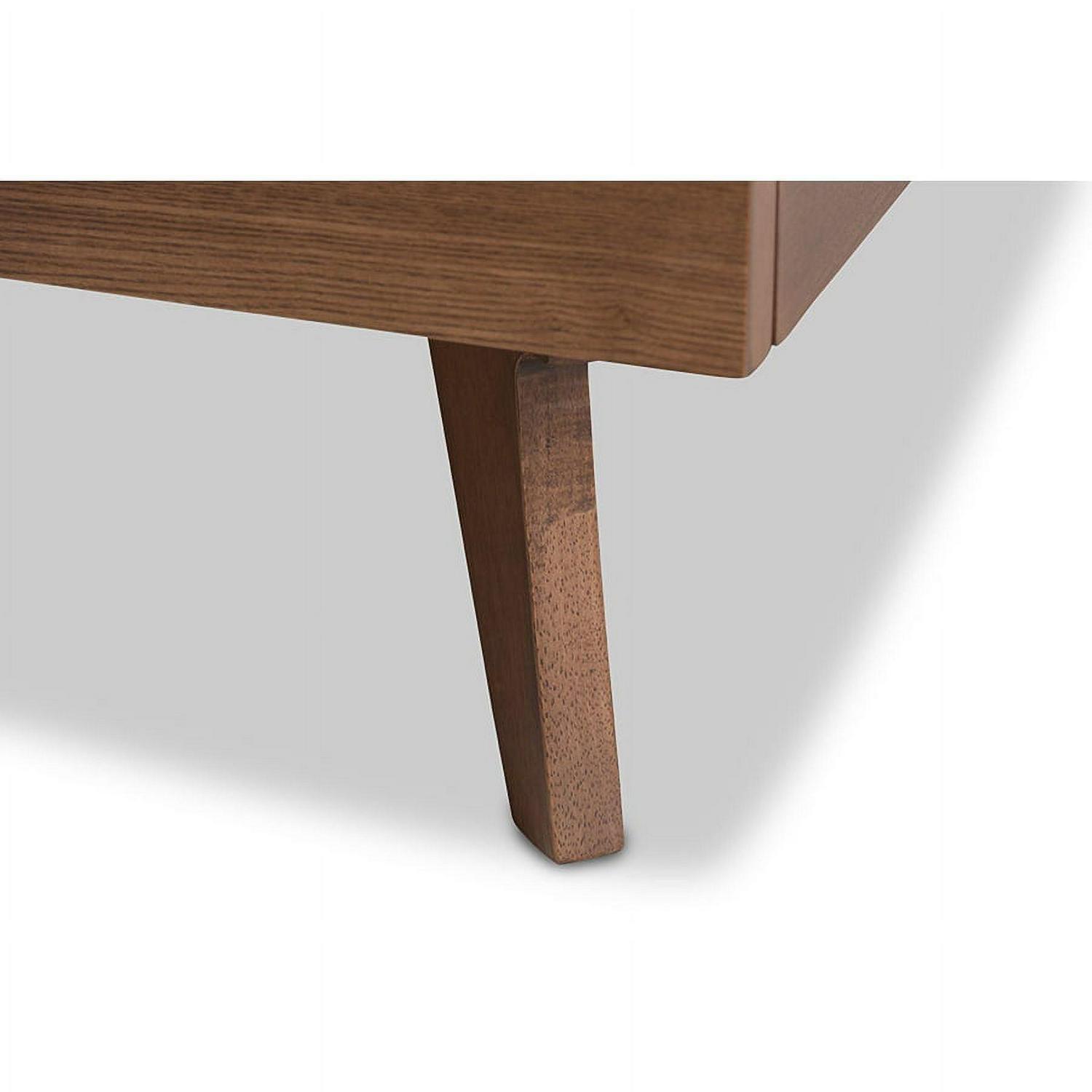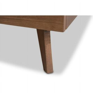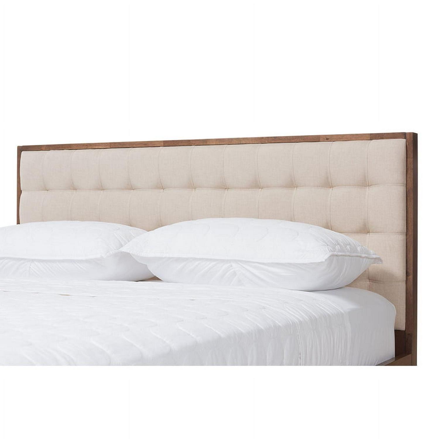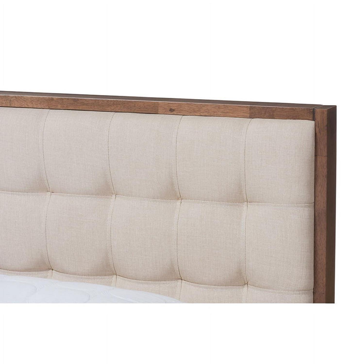 Baxton Studio Soloman Mid-Century Modern Light Beige Fabric and Walnut Brown Finished Wood Full Size Platform Bed