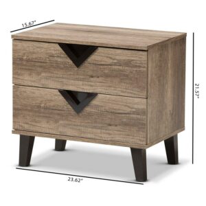 Baxton Studio Swanson Light Brown Wood 2-Drawer Nightstand