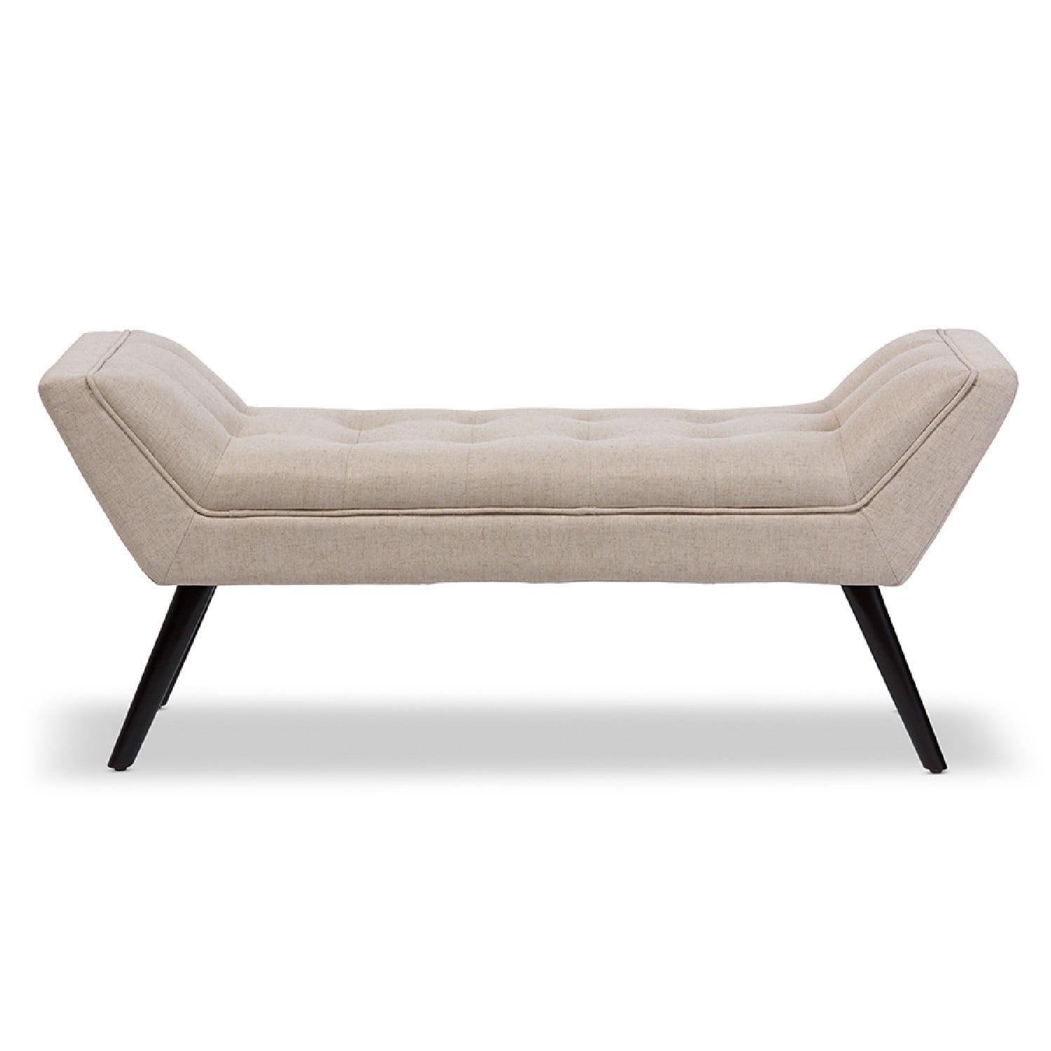 Baxton Studio Tamblin Mid-century Modern Retro Beige Linen Fabric Upholstered Grid-Tufting 50-Inch Bench Featuring mid-century design, the Tamblin Modern and Contemporary Ottoman Bench is inspired by the minimalist and modern concept. The cone-shaped tapered legs and the raised sides completely reveal an outstanding modern look that is extraordinary. A soft, tufted seat provides added style and comfort. The Tamblin, great for your bedroom as a bed end bench and entryway bench, brings alive your modern living room and bedroom decor instantly. Made in China, the Tamblin requires assembly.