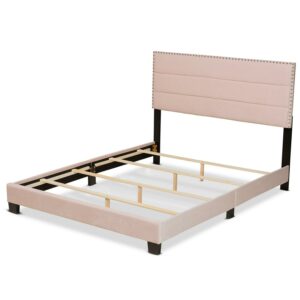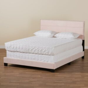 Baxton Studio Tamira Contemporary/Modern Velvet Tufted Panel Bed, Queen, Light Pink/Black