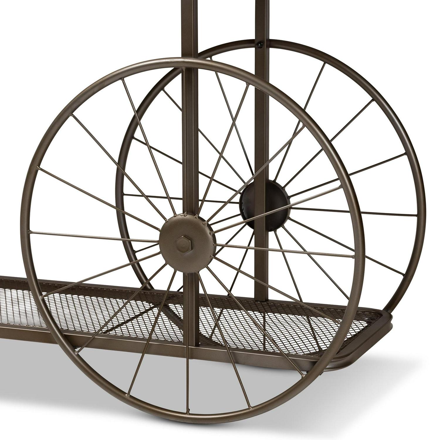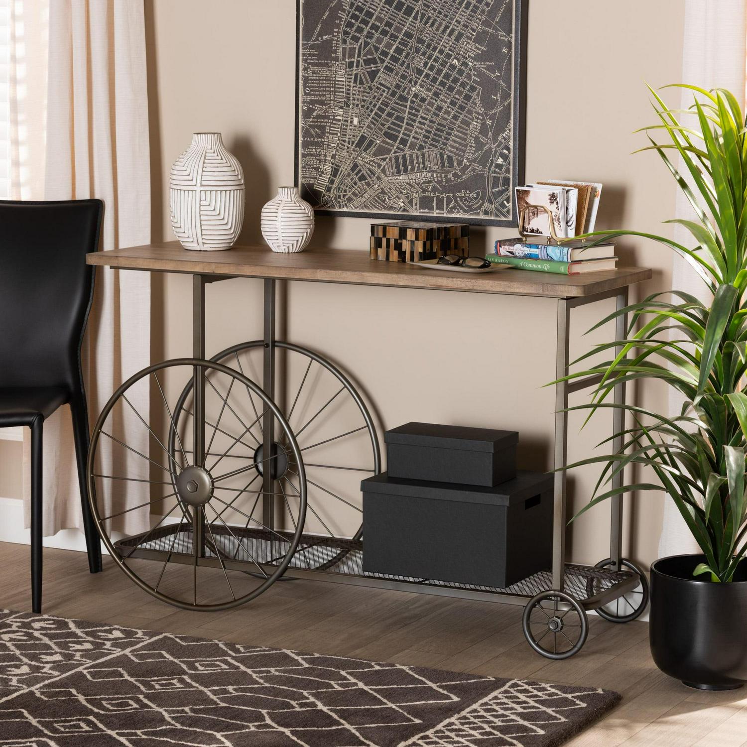 Baxton Studio Terence Vintage Rustic Industrial Natural Finished Wood and Black Finished Metal Wheeled Console Table