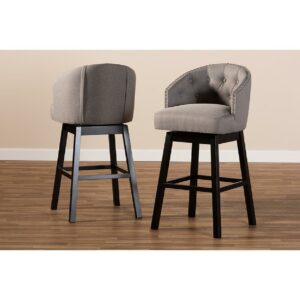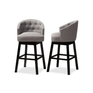 Baxton Studio Theron Transitional Gray Fabric Upholstered Wood Swivel Bar Stool Set of 2