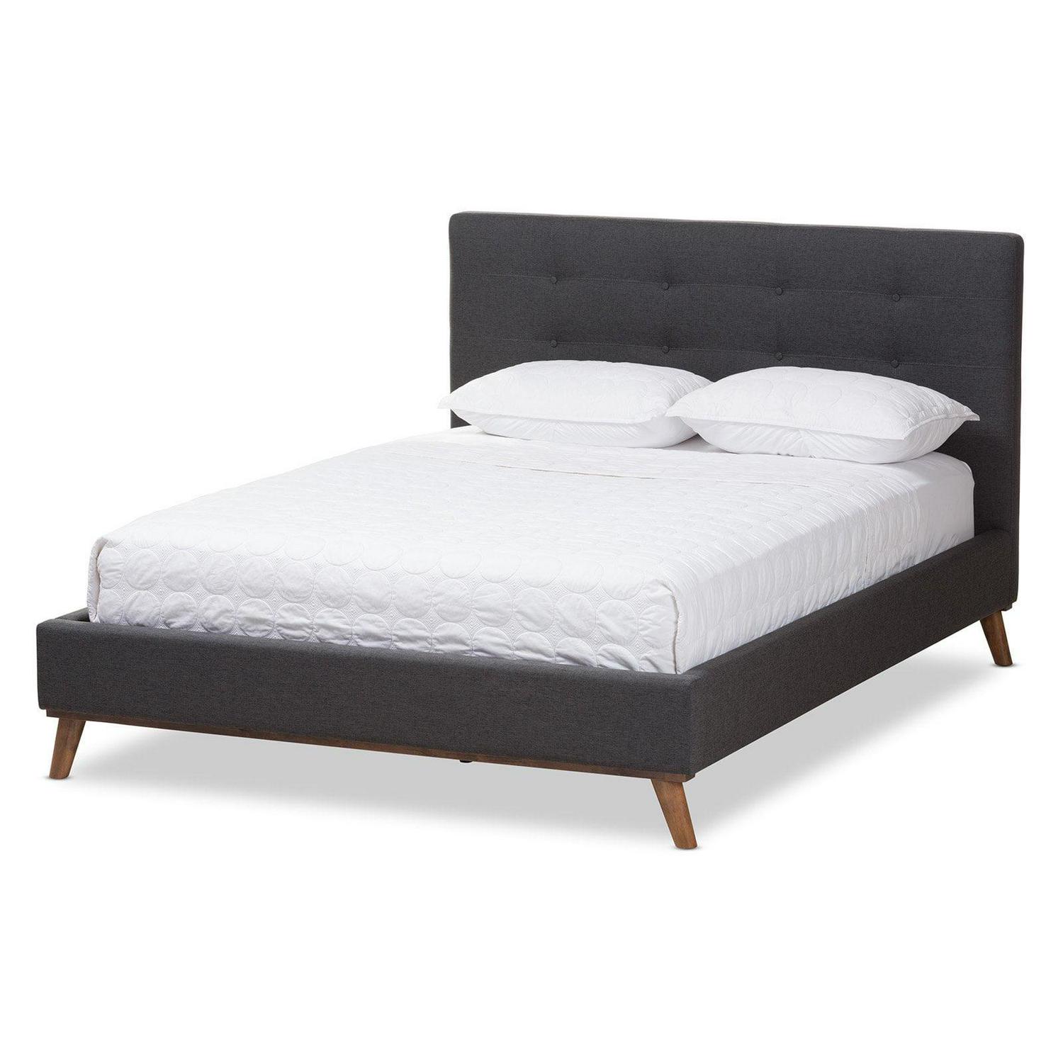 Baxton Studio Valencia Mid-Century Modern Dark Gray Fabric King Size Platform Bed