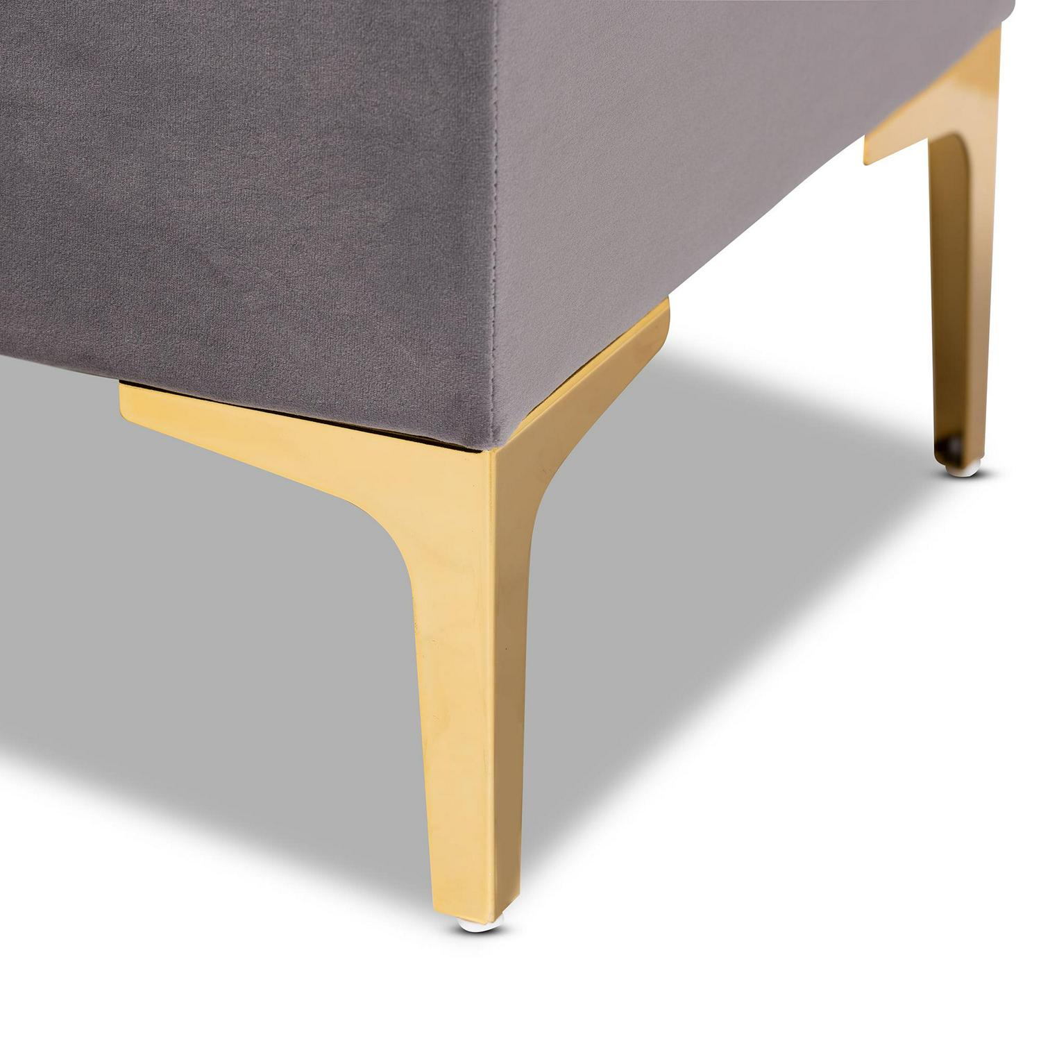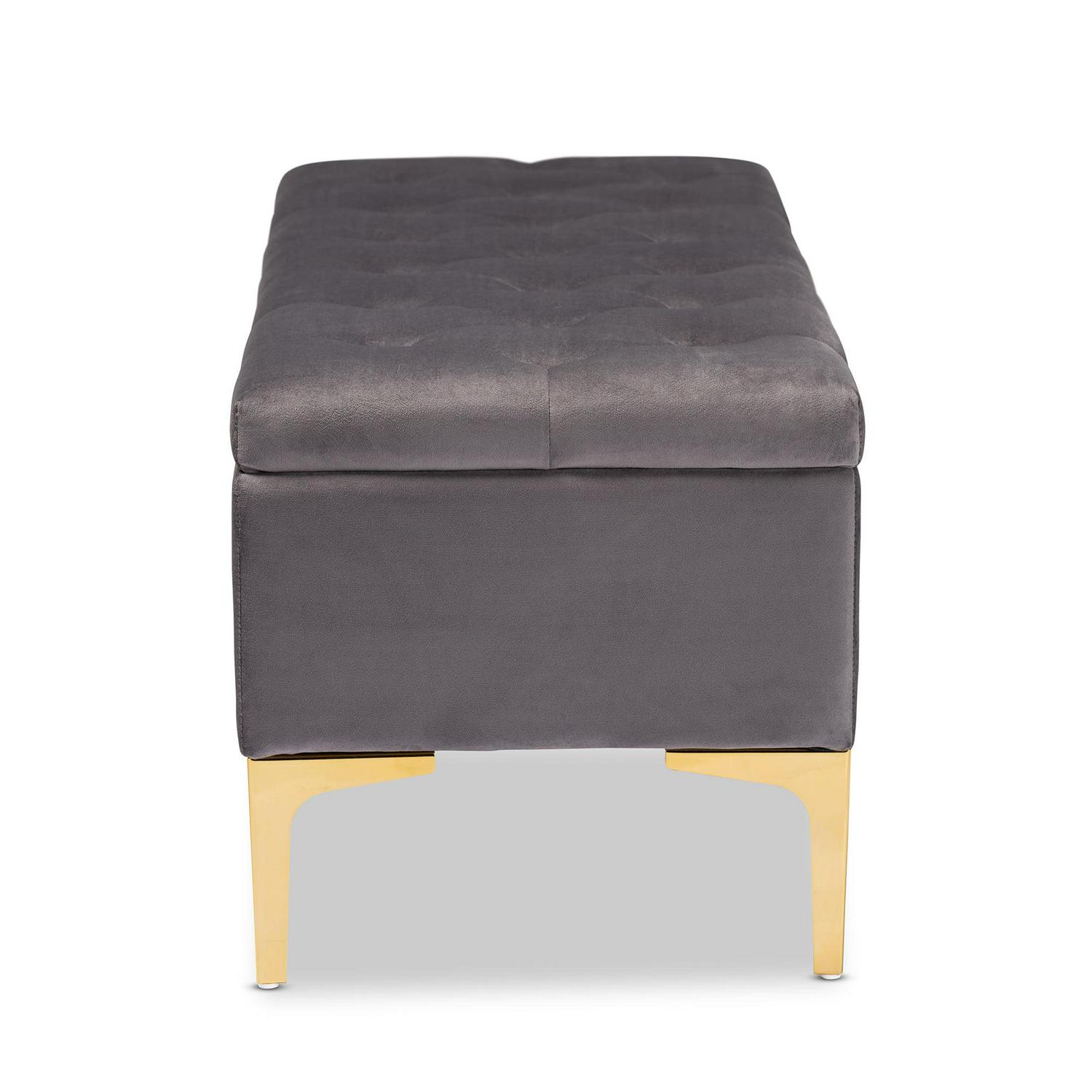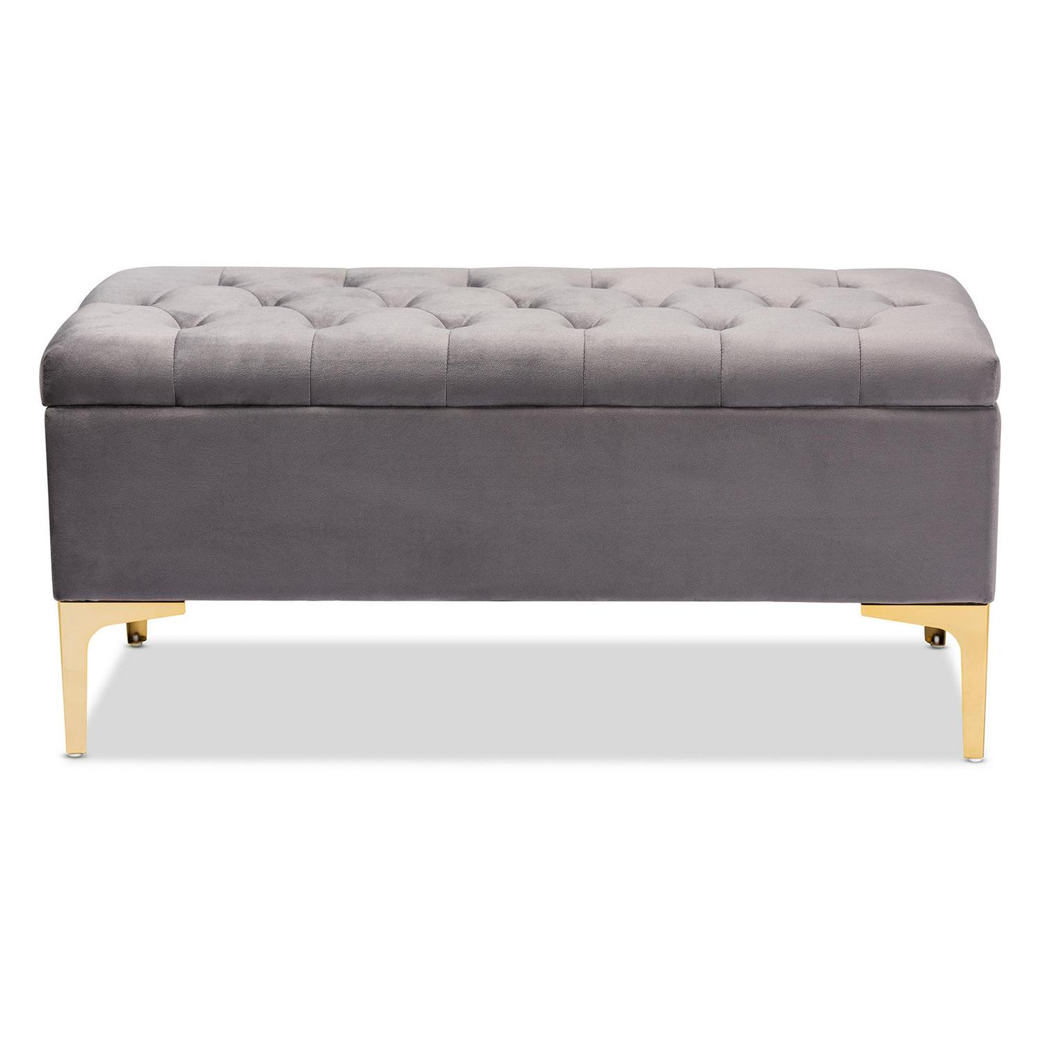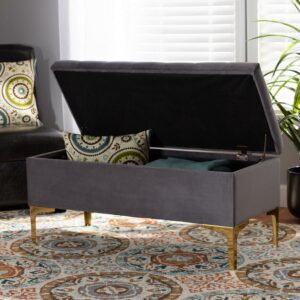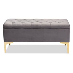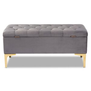 Baxton Studio Valere Glam and Luxe Grey Velvet Fabric Upholstered Gold Finished Button Tufted Storage Ottoman