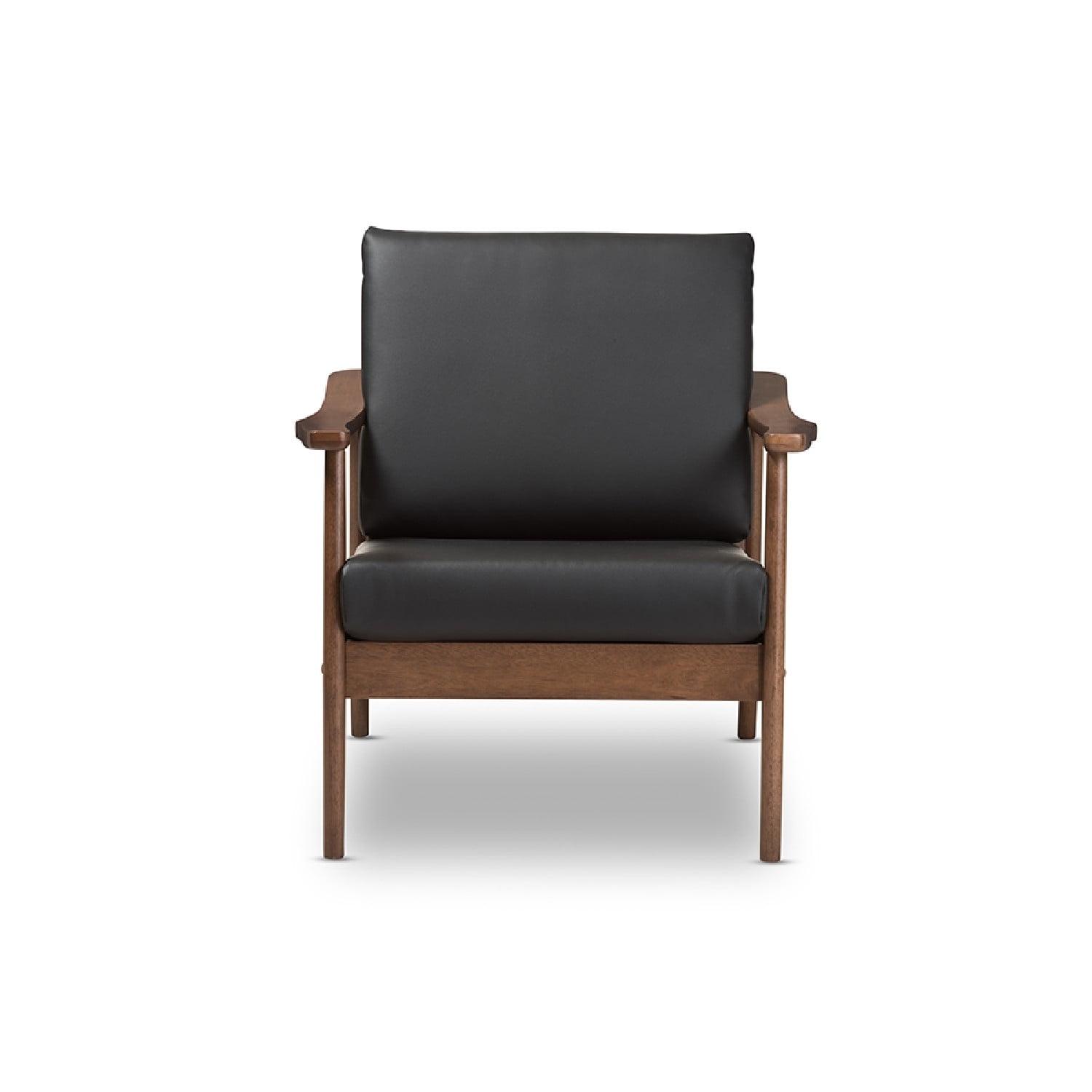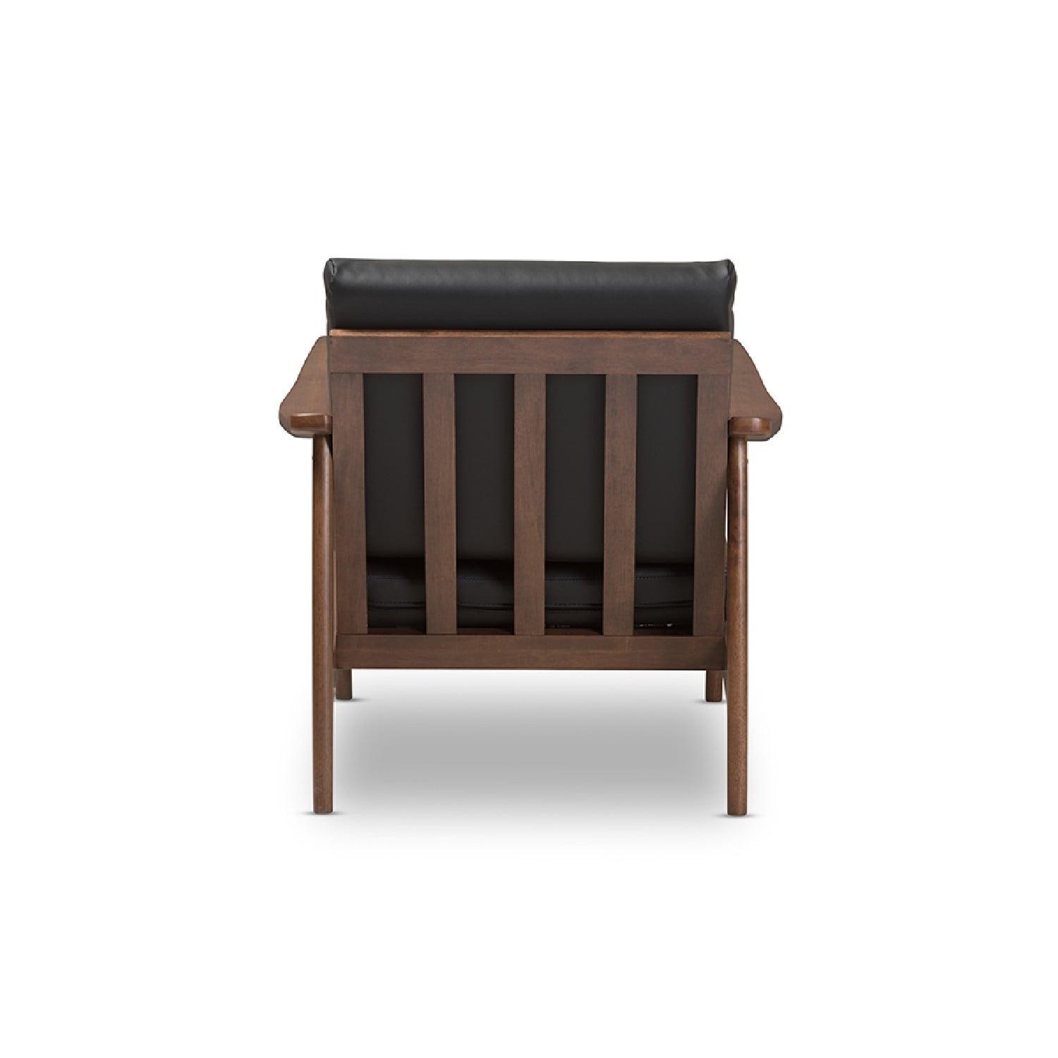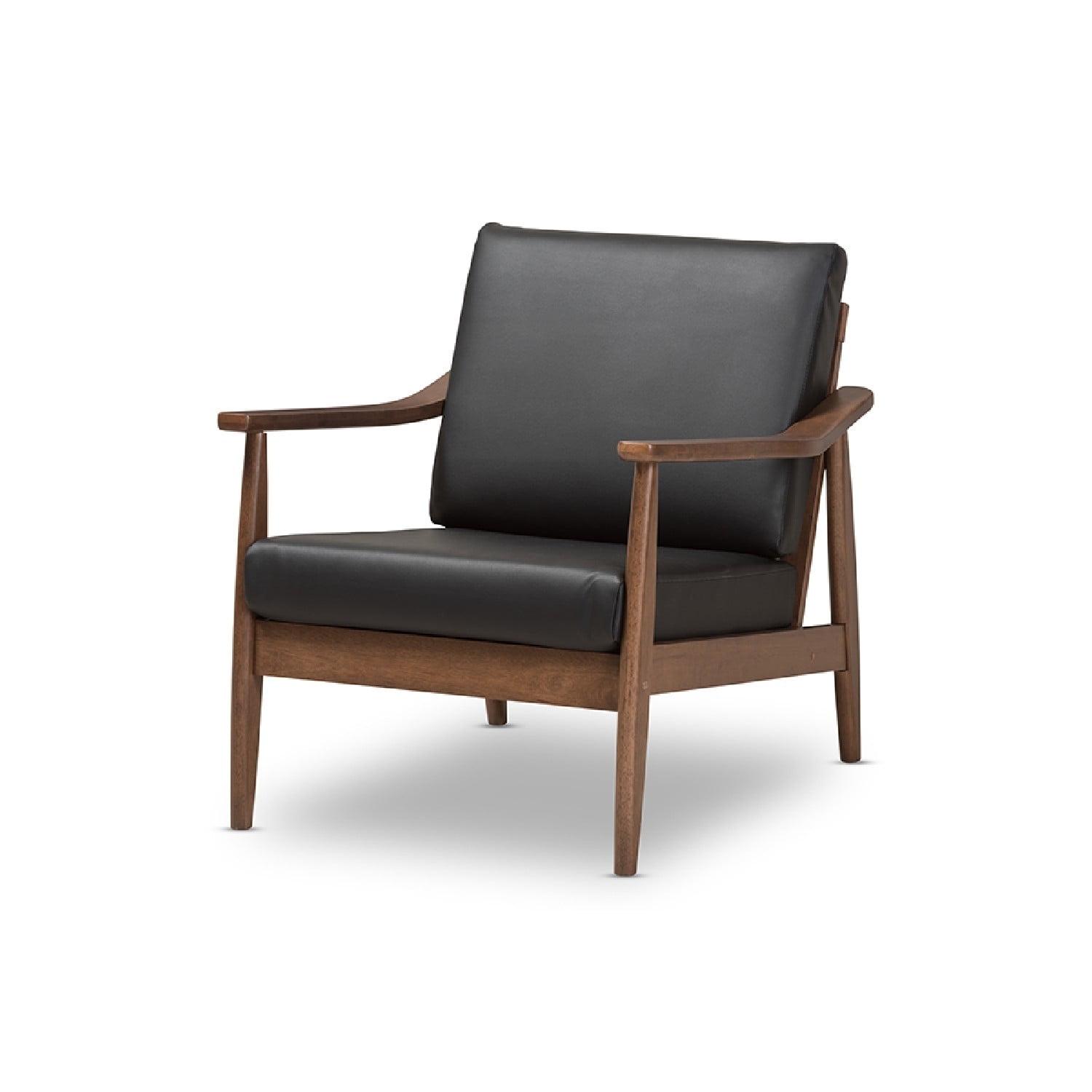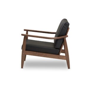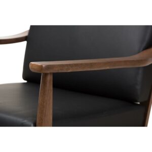 Baxton Studio Venza Mid-Century Modern Walnut Wood Black Faux Leather Lounge Chair