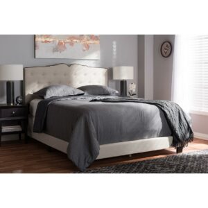 Baxton Studio Vivienne Modern and Contemporary Light Beige Fabric Upholstered King Size Bed