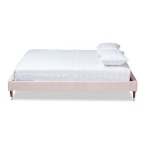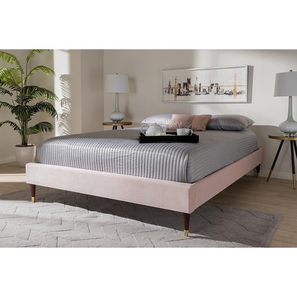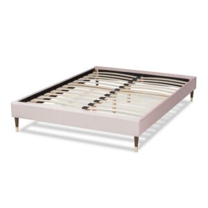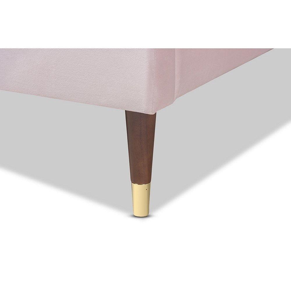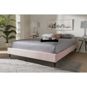 Baxton Studio Volden Glam and Luxe Light Pink Velvet Fabric Upholstered Full Size Wood Platform Bed Frame with Gold-Tone Leg Tips