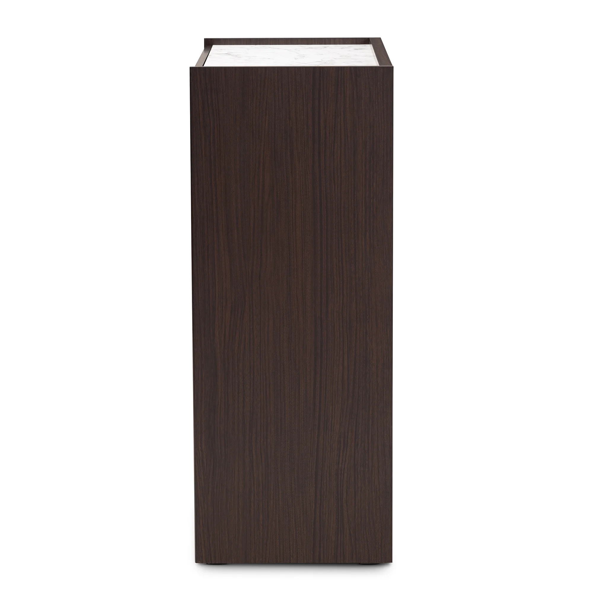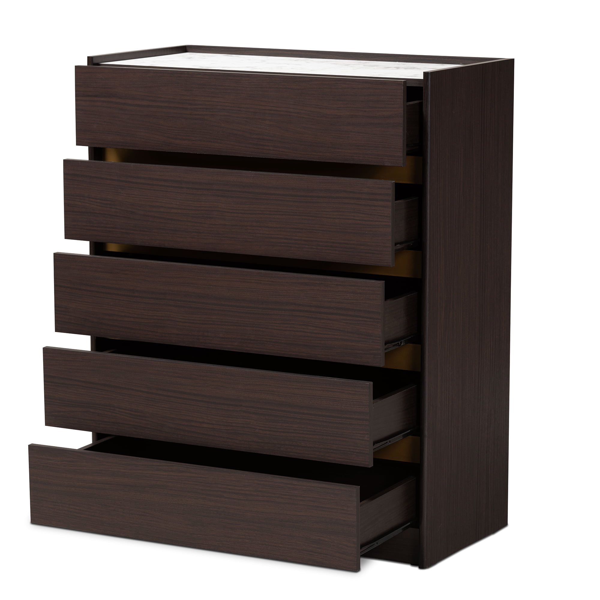 Baxton Studio Walker Modern and Contemporary Dark Brown and Gold Finished Wood 5-Drawer Chest with Faux Marble Top