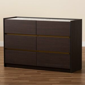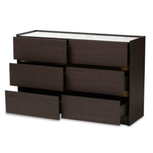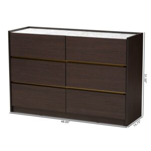 Baxton Studio Walker Modern and Contemporary Dark Brown and Gold Finished Wood 6-Drawer Dresser with Faux Marble Top