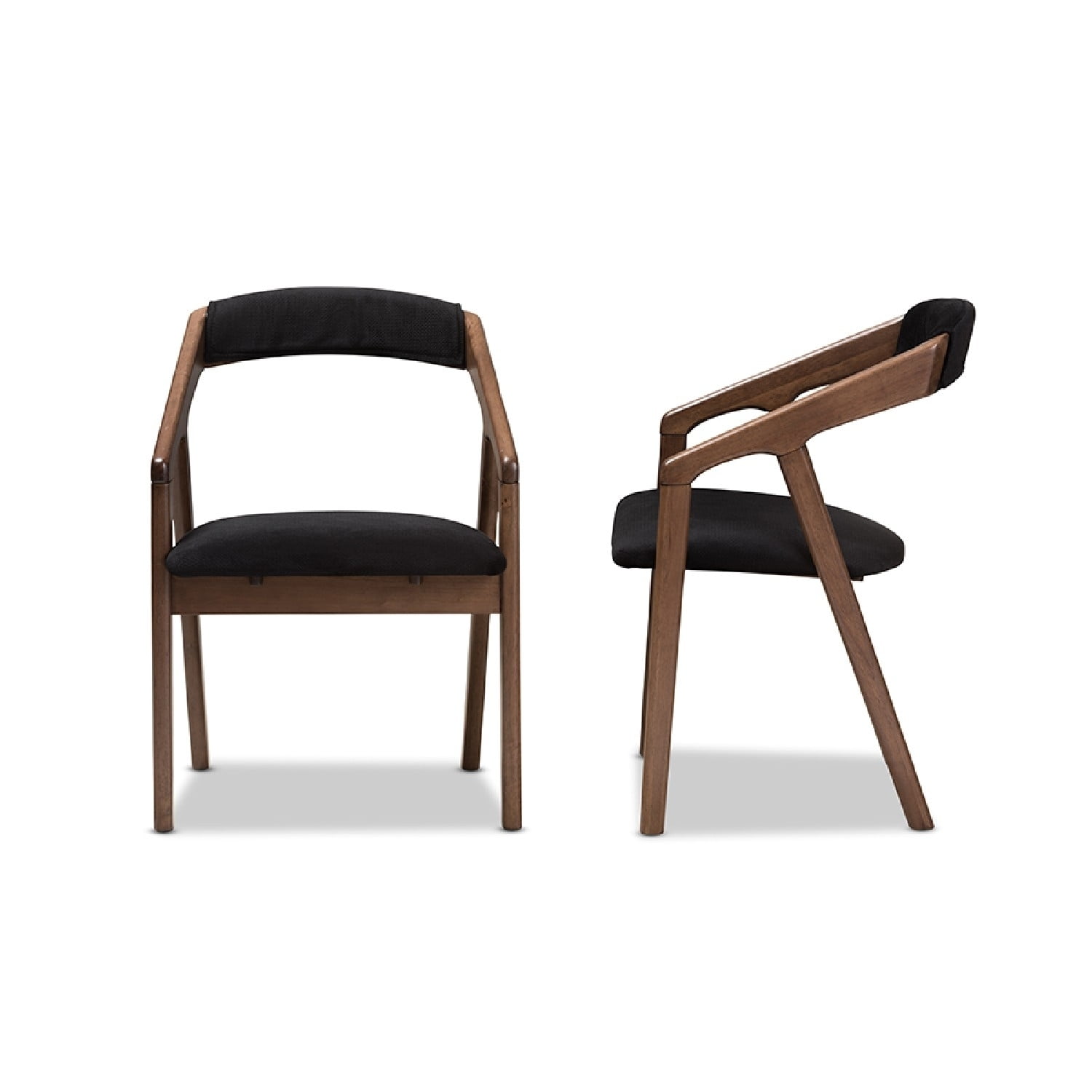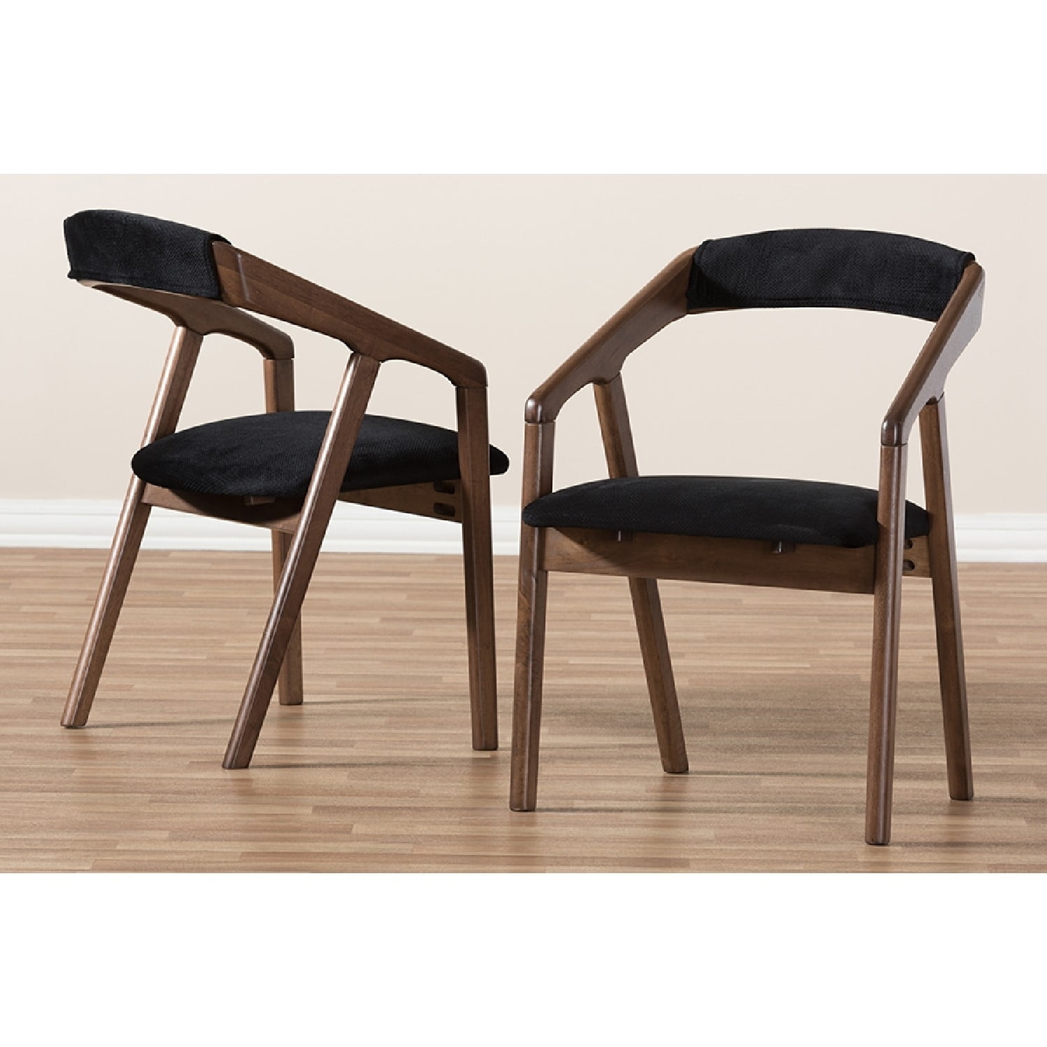 Baxton Studio Wendy Mid-Century Modern Black Velvet and Walnut Medium Brown Wood Finishing Dining Chair (Set of 2) Meticulously crafted with craftsmanship, the Wendy dining chair is as functional as it is stylish. Featuring cushioned seats upholstered in black velvet upholstery, this set of two dining chairs feature curved backrest with downward sloping armrests extended to the ground. Embracing mid-century modern design, the Wendy will update your home decor instantly. Made in Malaysia, the Wendy requires assembly. Specifications: Mid century modern dining chair Set includes two chairs Solid rubberwood construction Walnut finishing Padded seat in black velvet fabric Curved backrest Assembly required