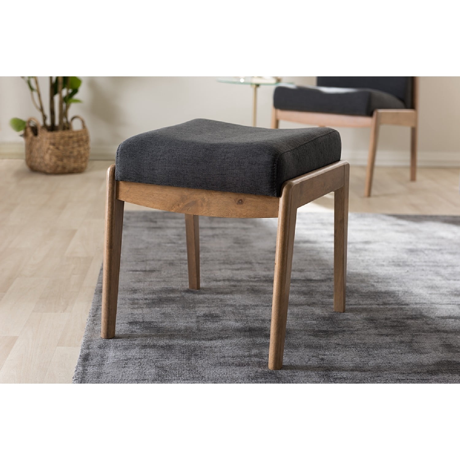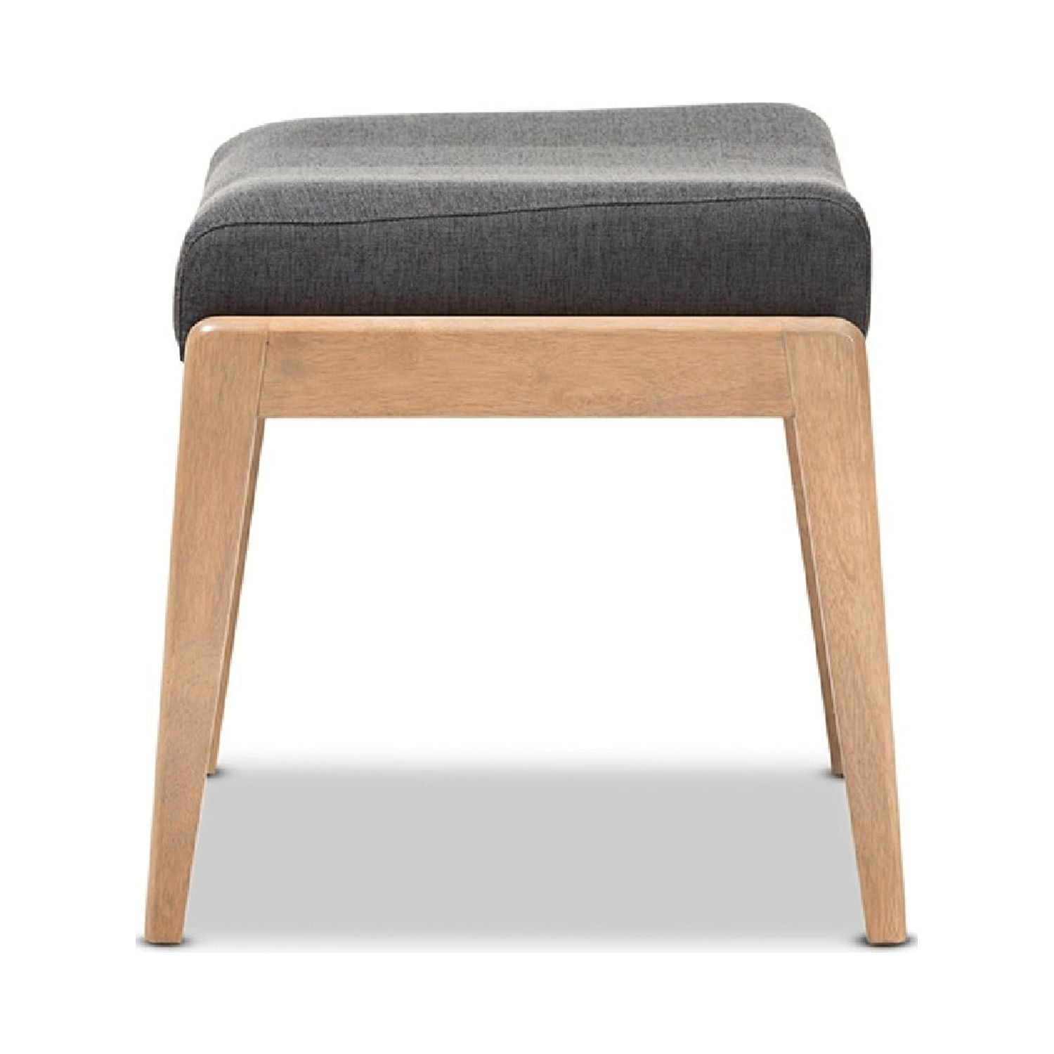 Baxton Studio Wera Mid-Century Retro Modern Dark Grey Fabric Ottoman Ensure a comfortable seat in any room of the house with the easily portable and stylish Wera ottoman. Constructed of solid rubberwood frame, this padded ottoman is upholstered in dark grey polyester fabric for sophistication and modern styling in your space, ensuring your every days use. Light brown finishing legs, with chic looks ensure a study foundation for ultimate relaxation and comfort while you relax and unwind. Perfect for the living room, bedroom or reading nook for versatility, the Wera ottoman is ideal for extra seating, and enhances interest in your existing dcor. Made in Malaysia, the Wera requires assembly. Specifications: Mid-century stool Polyester fabric upholstery Color: dark grey “oak” light brown finishing Foam padded Made in Malaysia Assembly required