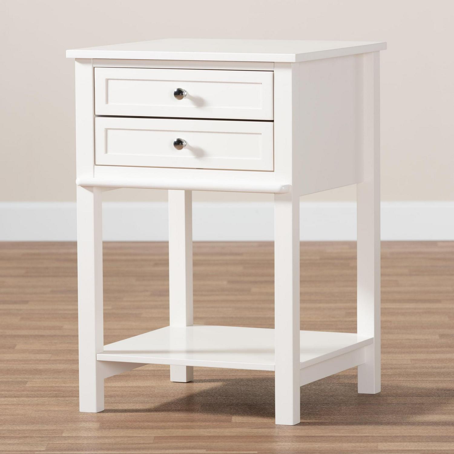 Baxton Studio Willow Modern Transitional White Finished 2-Drawer Wood End Table