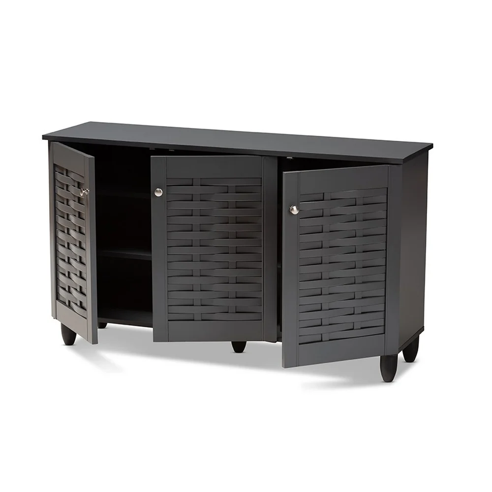 Baxton Studio Winda Modern and Contemporary Dark Gray 3-Door Wooden Entryway Shoe Storage Cabinet