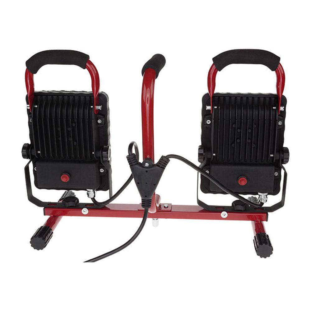 The SL-1522 LED Work Light has dual light fixtures that can be directed independently of each other. The two fixtures are attached to a base unit that can be removed from the tripod stand for low angle illumination. The stand will extend the dual fixtures up to 6 feet off the ground. Each fixture uses a single long life 3,000 lumen LED independently controlled by its own sealed push button switch for a combined output of 6,000 lumens. The multi-fin heat sink design keeps each fixture cool to the touch. Each of the work light fixtures can be tilted and swiveled independently allowing the user to position each fixture exactly where light is needed. Each work light fixture has a tempered glass lens, and is powder-coated for long wear durability. The comfort-grip handles makes transporting and positioning this work light a snap, and the center-mounted handle aids in removing, mounting and moving the base unit. The work light has a 6 Ft. 18/3 SVT cord.